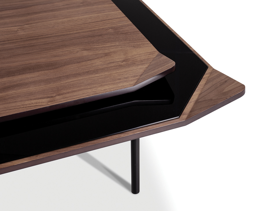 Material: Tampo laminado Nogueira e tampo de vidro e pés pretos