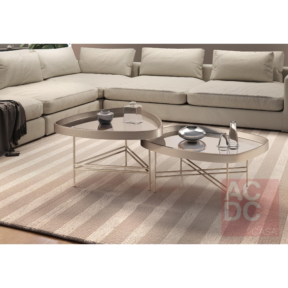 Material: Tampo de MDF laqueado com espelho sobreposto e pés em aço carbono.