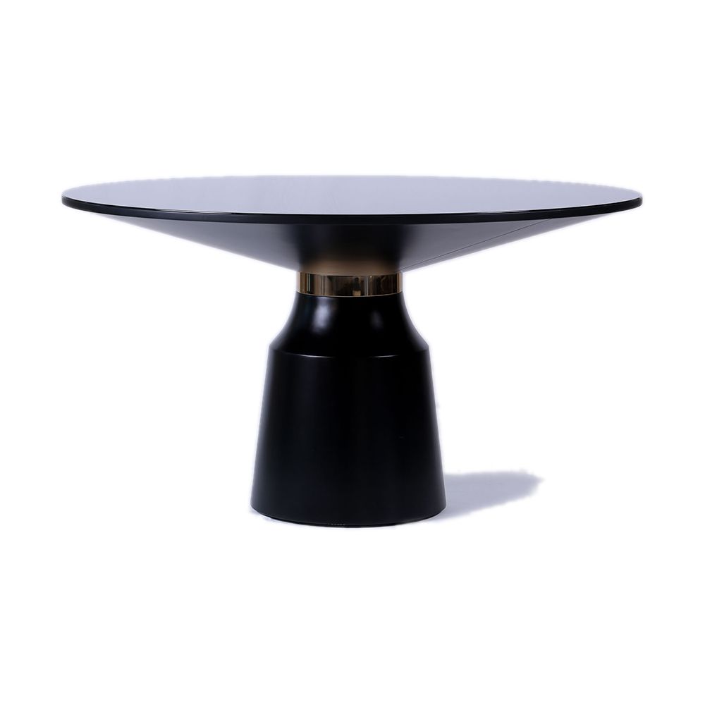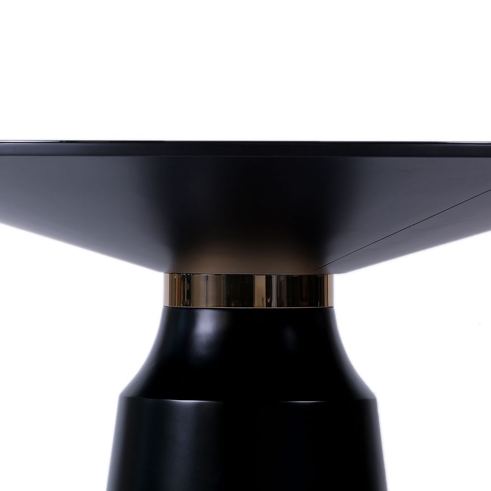 Material: Base em madeira torneada, tampo em MDF em laca com vidro.