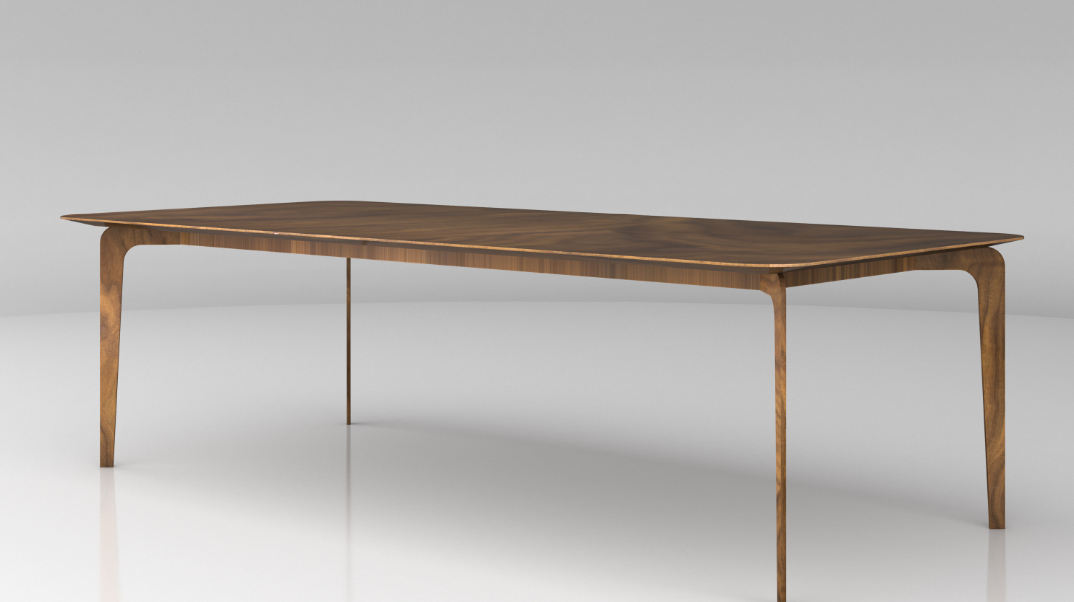 Lacas somente fosco acetinadas. Obs.: Tampos acima de 2,70m os veios da lâmina ficarão com sentido na dimensão da largura. Foto com base em aço carbono laminada. Canto garrafa.