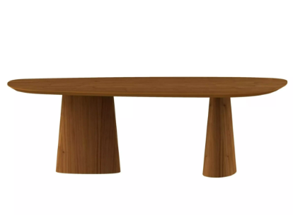 Tampo em MDF no sistema tamburato, painel semi-oco, composto por 2 chapas externas de MDF coladas e prensadas sobre uma estrutura interna metálica, com espessura total de 37mm e bordas usinadas com chanfro em 60°, apresentando um efeito de “borda infinita”. Acabamento da parte superior do tampo pode ser em laminado madeira ou laca. Bases em compensado laminado madeira ou fibra de vidro, quando acabamento em laca. Produto fornecido desmontado, sendo necessário apenas parafusar as bases ao tampo.