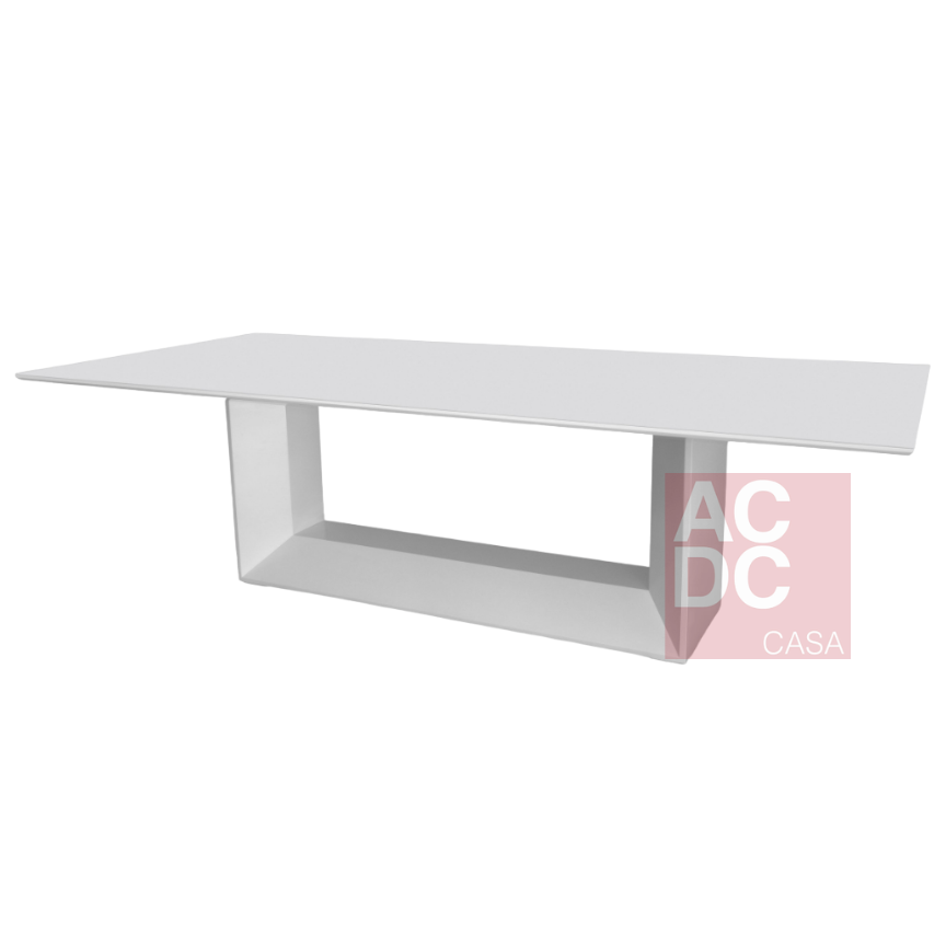 Material: Mesa fabricada em madeira de MDF na cor Laca Branca com vidro pintado.