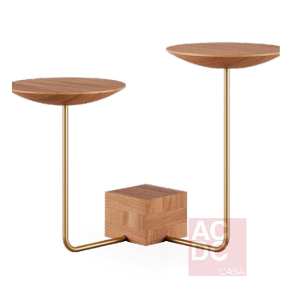 Material: Estrutura metálica, base e tampos em madeira maciça.