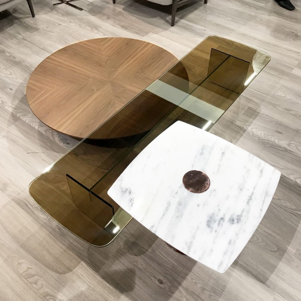 Material: Tubo de aço carbono em banho de cromo, cobre ou dourado e mármore.