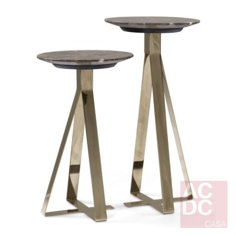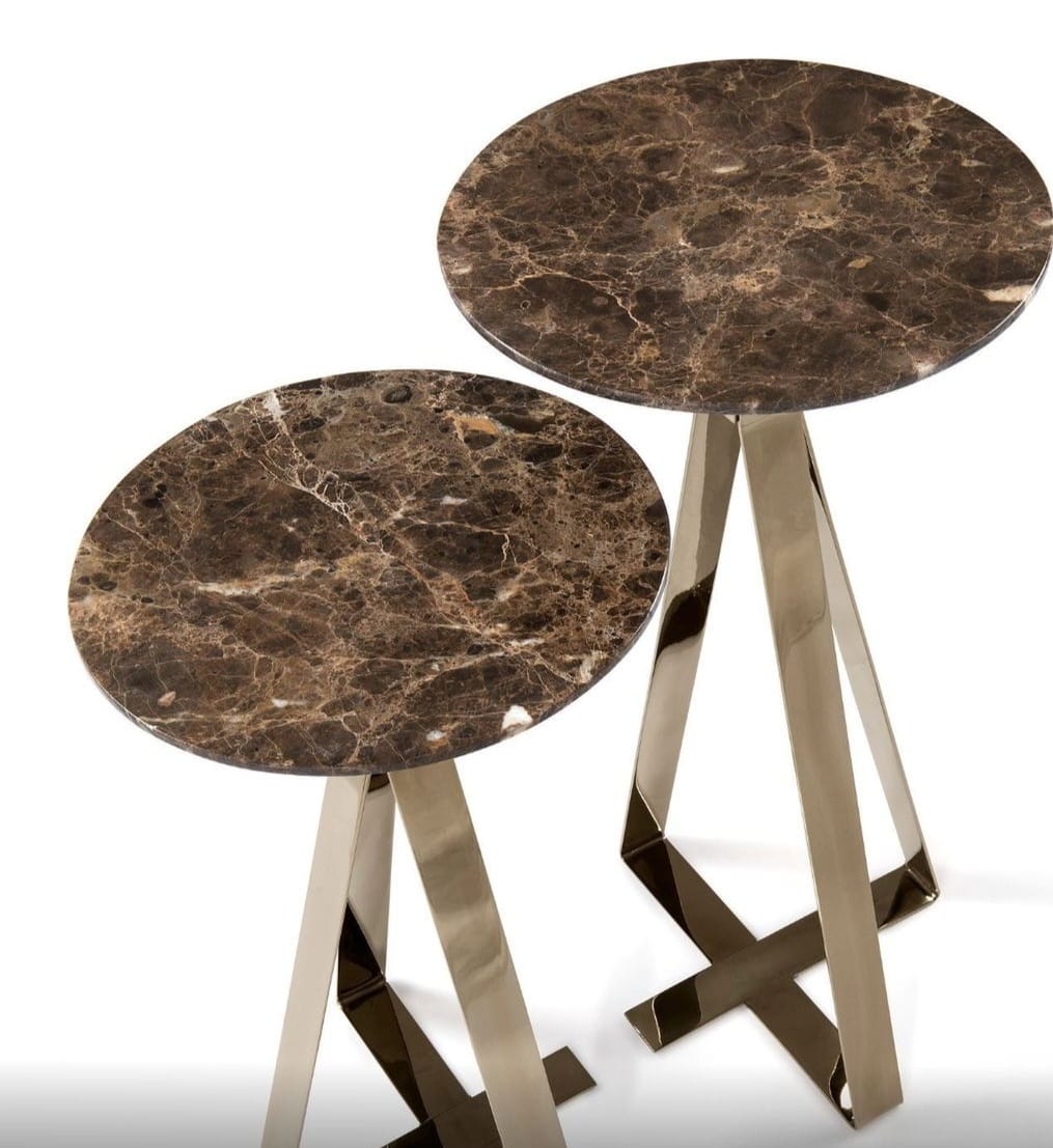 Material: Base e aro em aço inox tonalizado e tampo em mármore marrom