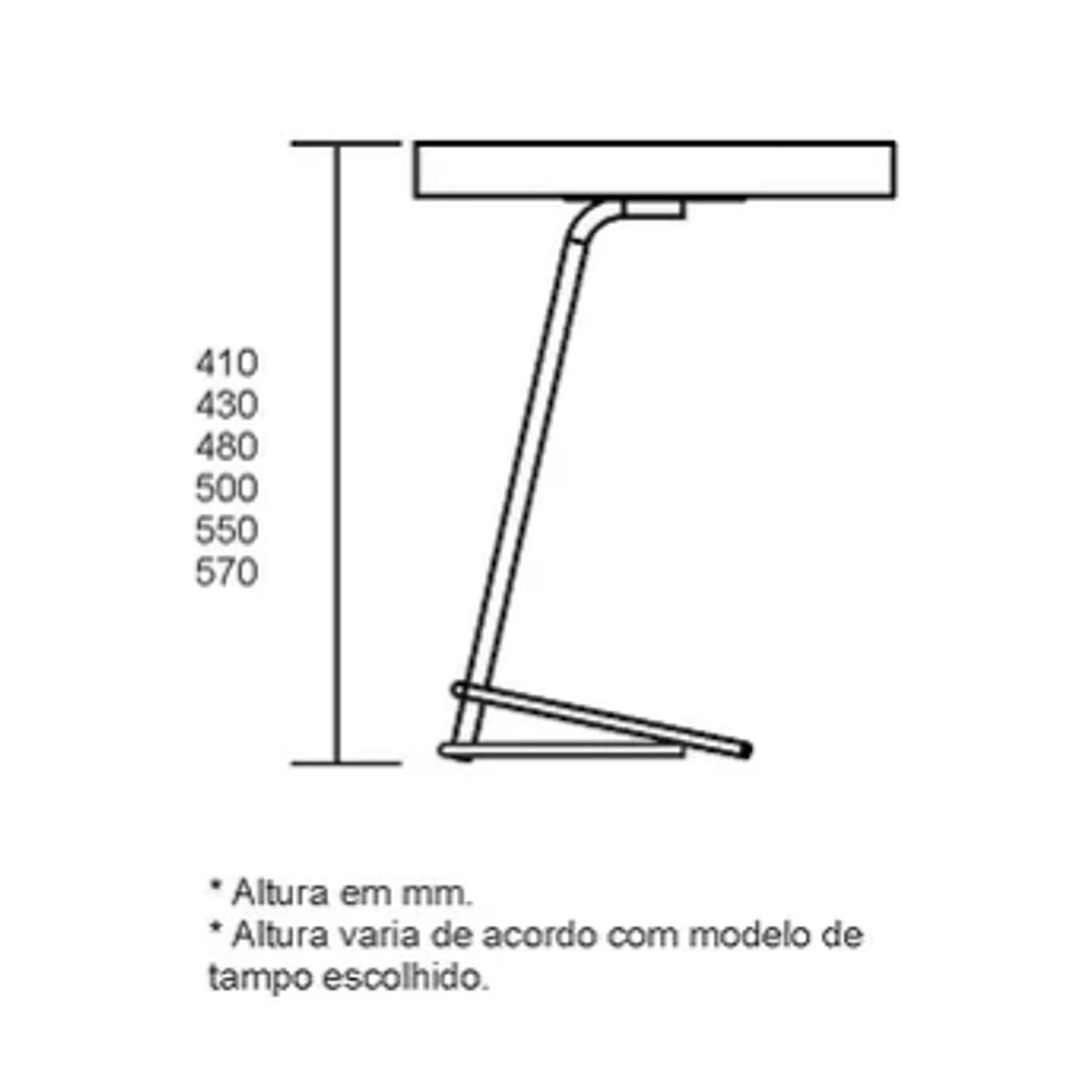 Material: Mdf com Lamina cinamomo, tampo chanfrado e base em aço carbono