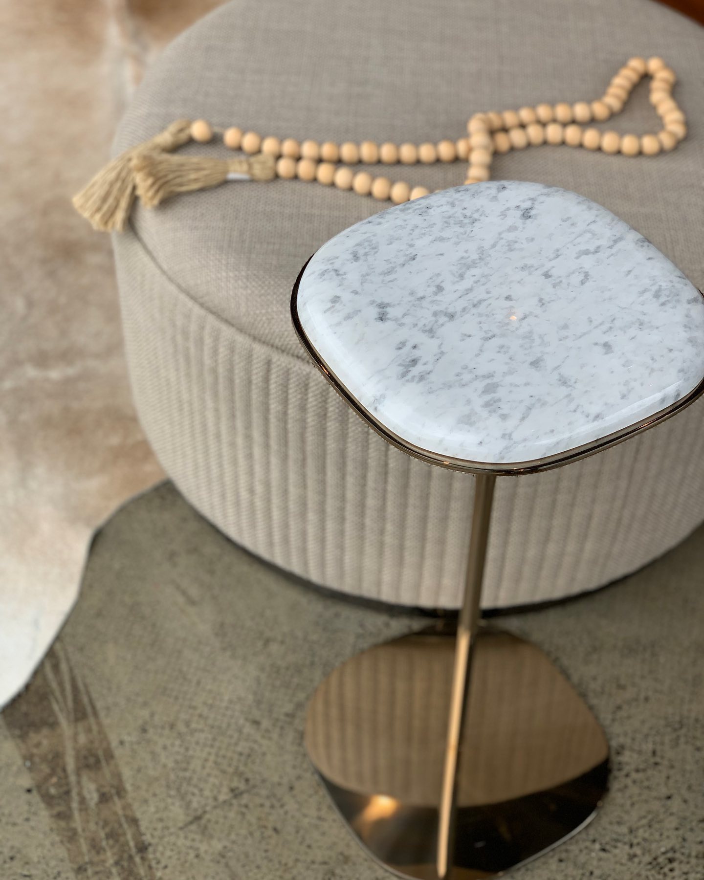 Material: Estrutura em Aço inox tonalizado e tampo em mármore Imperador