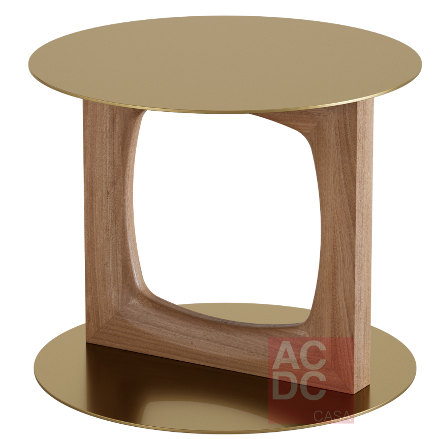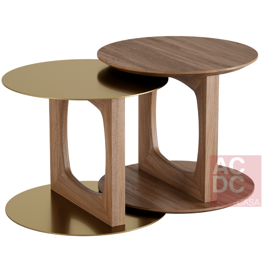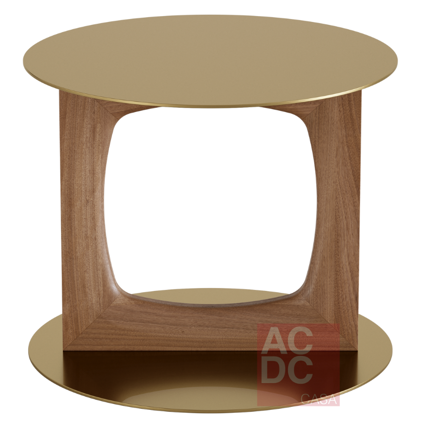 - M – Ø 0,55 x 0,45 H |Estrutura em madeira maciça e tampos metálicos.