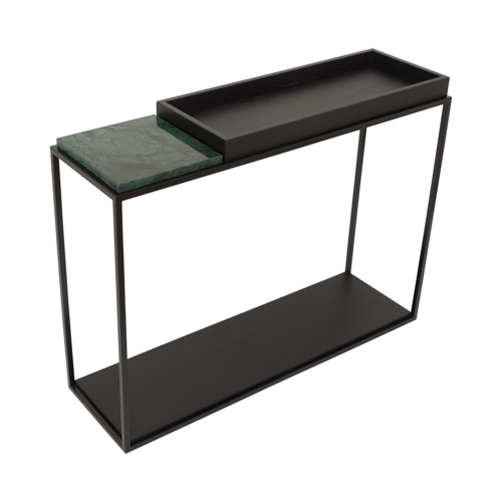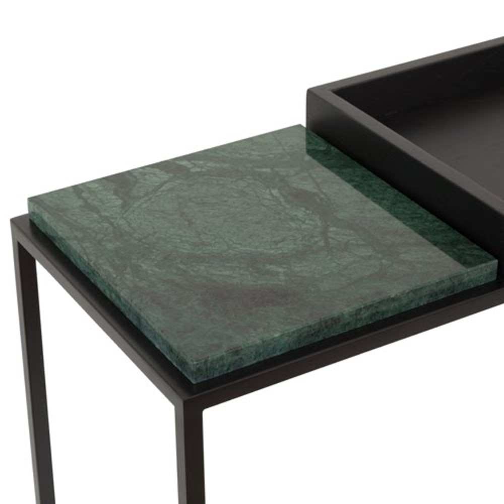 Material: Estrutura em Aço inox pintado, tampo inferior e superior em laminado ebanizado, com detalhe no mármore Guatemala