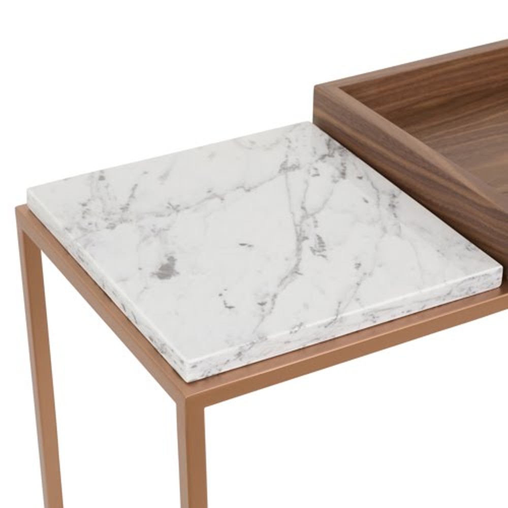 Material: Estrutura em Aço inox tonalizado, tampo inferior e superior em laminado, com detalhe no mármore Carrara