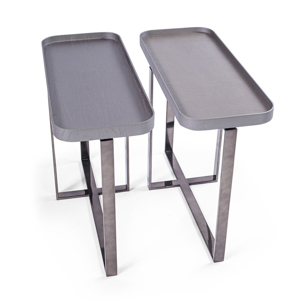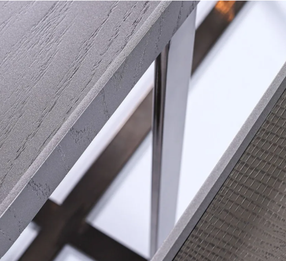 Material: Estrutura em Aço inox Ônix e tampo laminado em carvalho