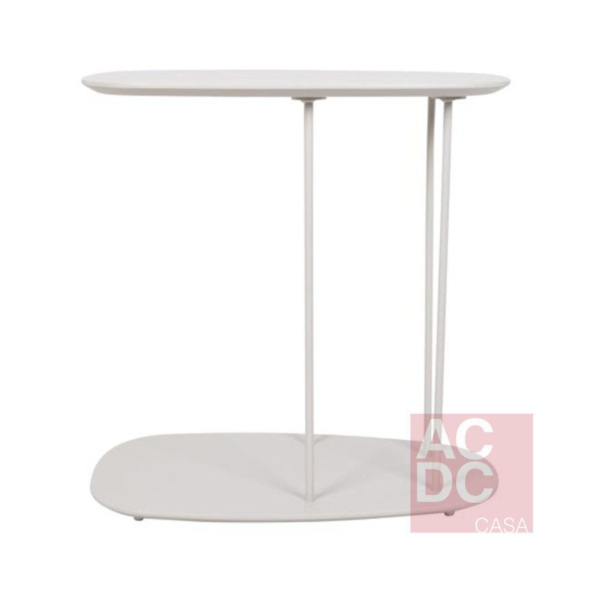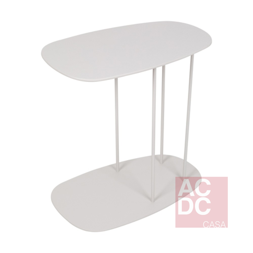 Material: Estrutura de metal branco fosco com base e tampo oval em laca branca canto garrafa