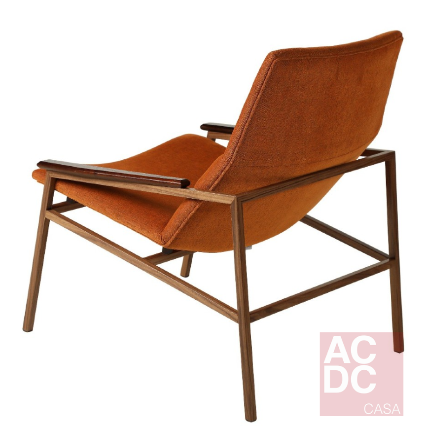 Material: Estrutura em aço carbono laminado e detalhes em madeira nos braços. Almofadas no encosto e assento com espuma densidade 30 com manta siliconada.