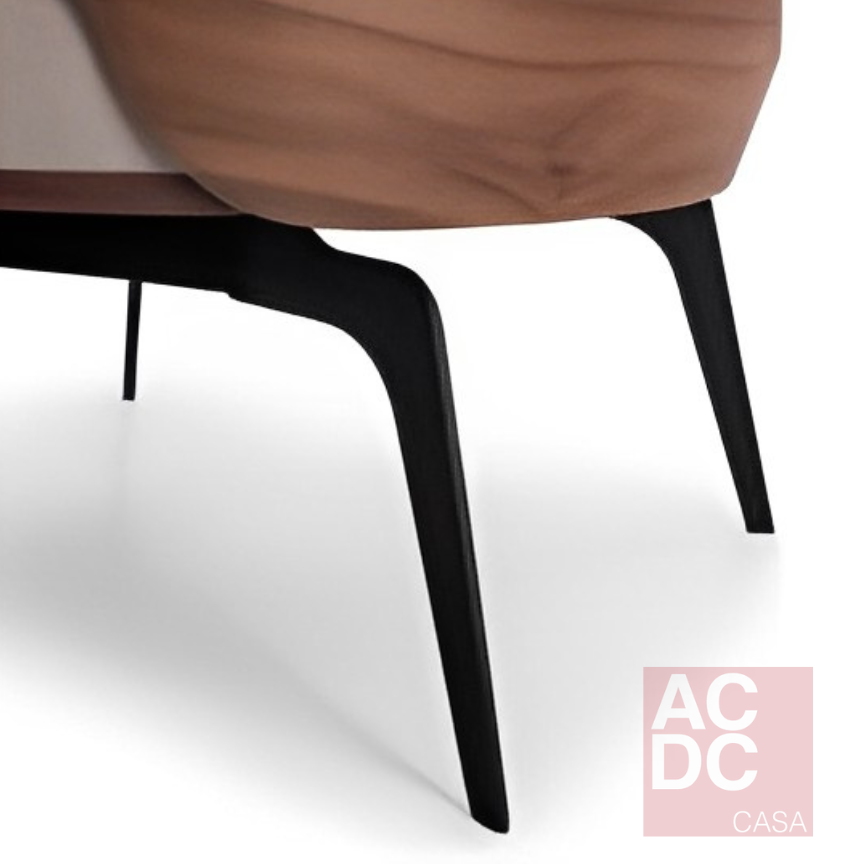 A poltrona Air foi criada a partir de um objeto comum para o designer, linhas que desenham um tênis foram extraídas e transformadas nos elementos de madeira que protagonizam os traços das poltronas.