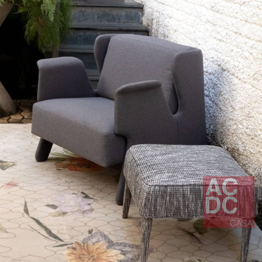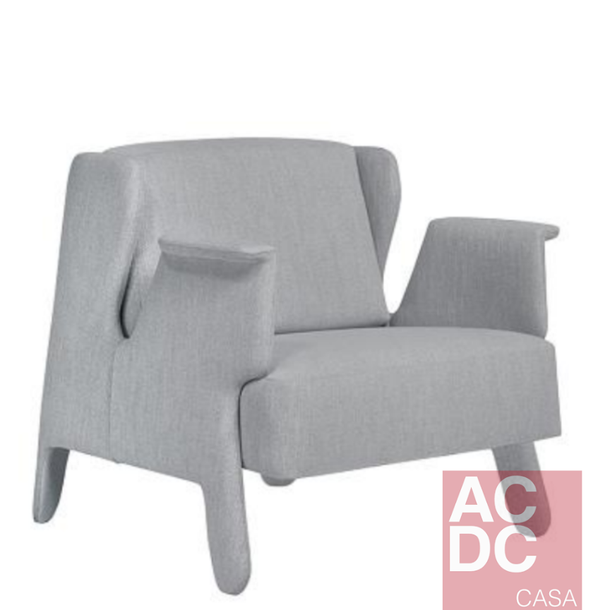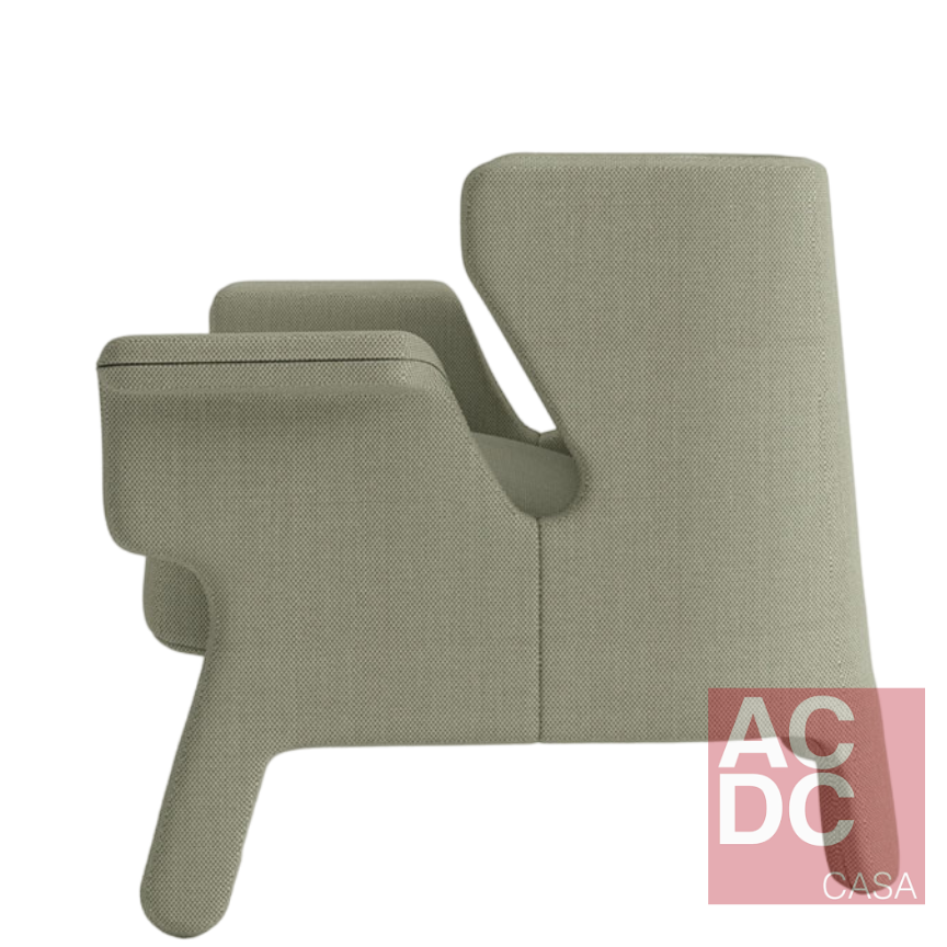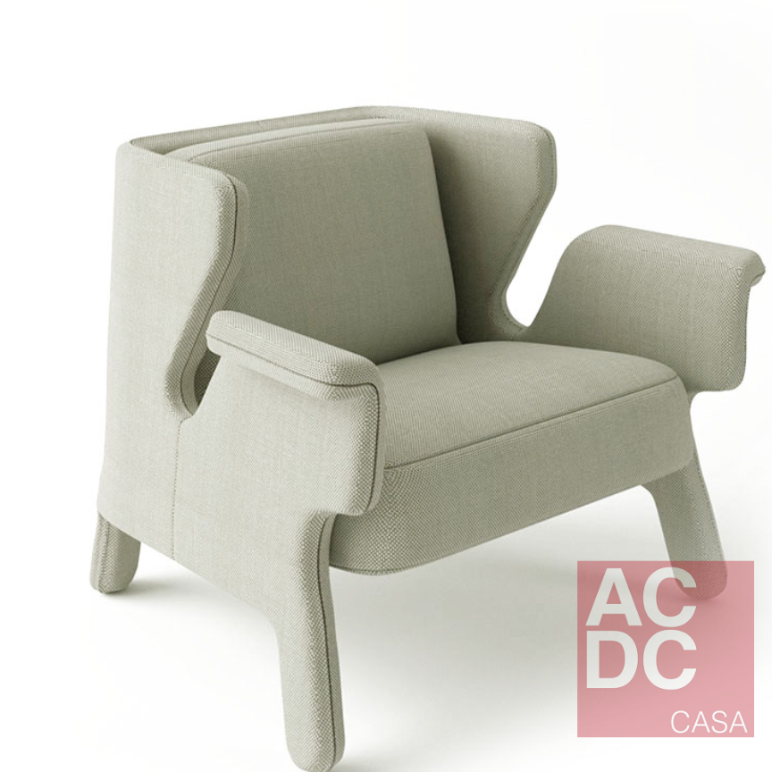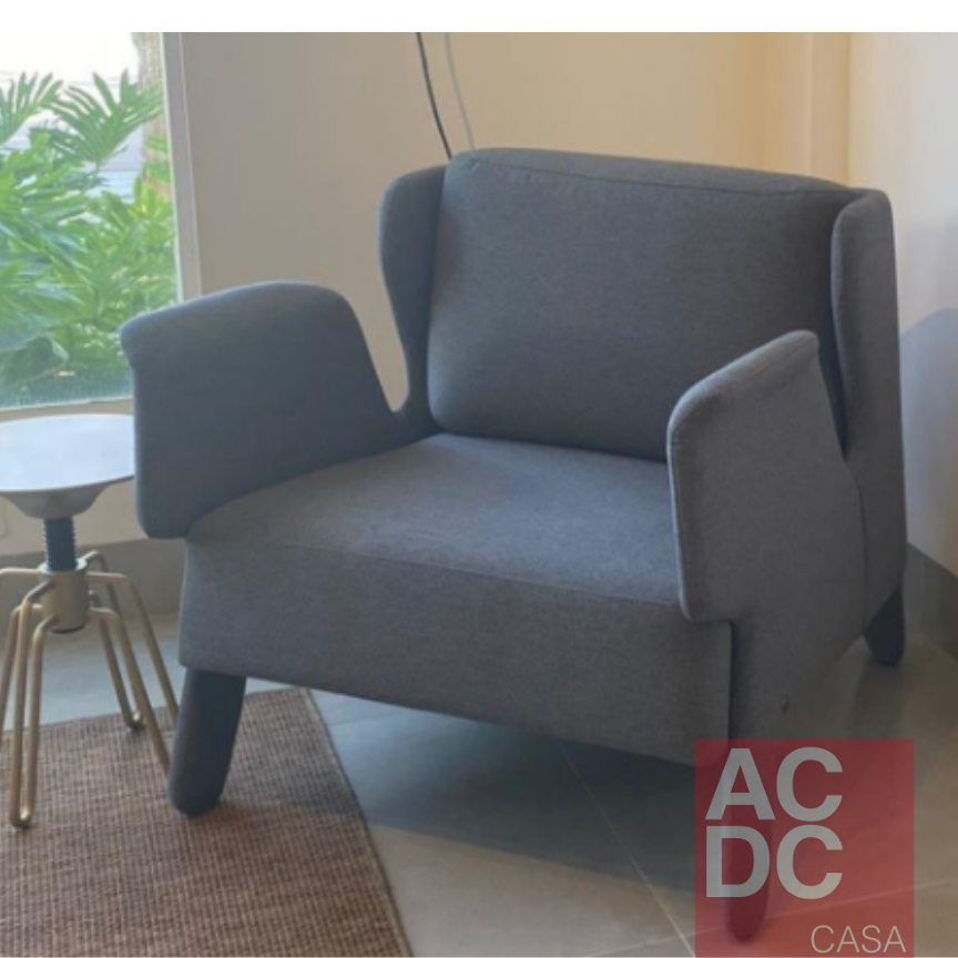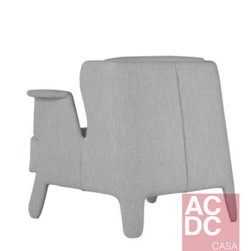 A Poltrona remete a características de comportamento. Peralta de levado, traquina, travesso. Características traduzidas em uma poltrona com ar leve e confortável, mas traços de travessura, com pés atos e braços curvos. Ela tem estrutura em madeira eucalipto, espuma de alta resiliência e tecnologia desenvolvida especialmente para conforto, percinta elástica no assento, sua almofada de encosto é em espuma, e possui assento fixo e encosto solto. Pés revestidos.
