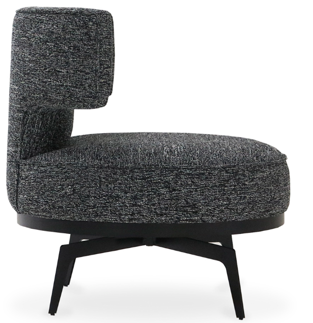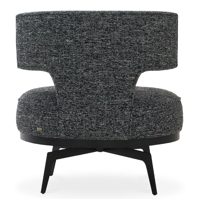 Material: Estrutura em madeira, assento e encosto fixos com persintas italianas de alta resistência e estofados. Base giratória em aço carbono pintura