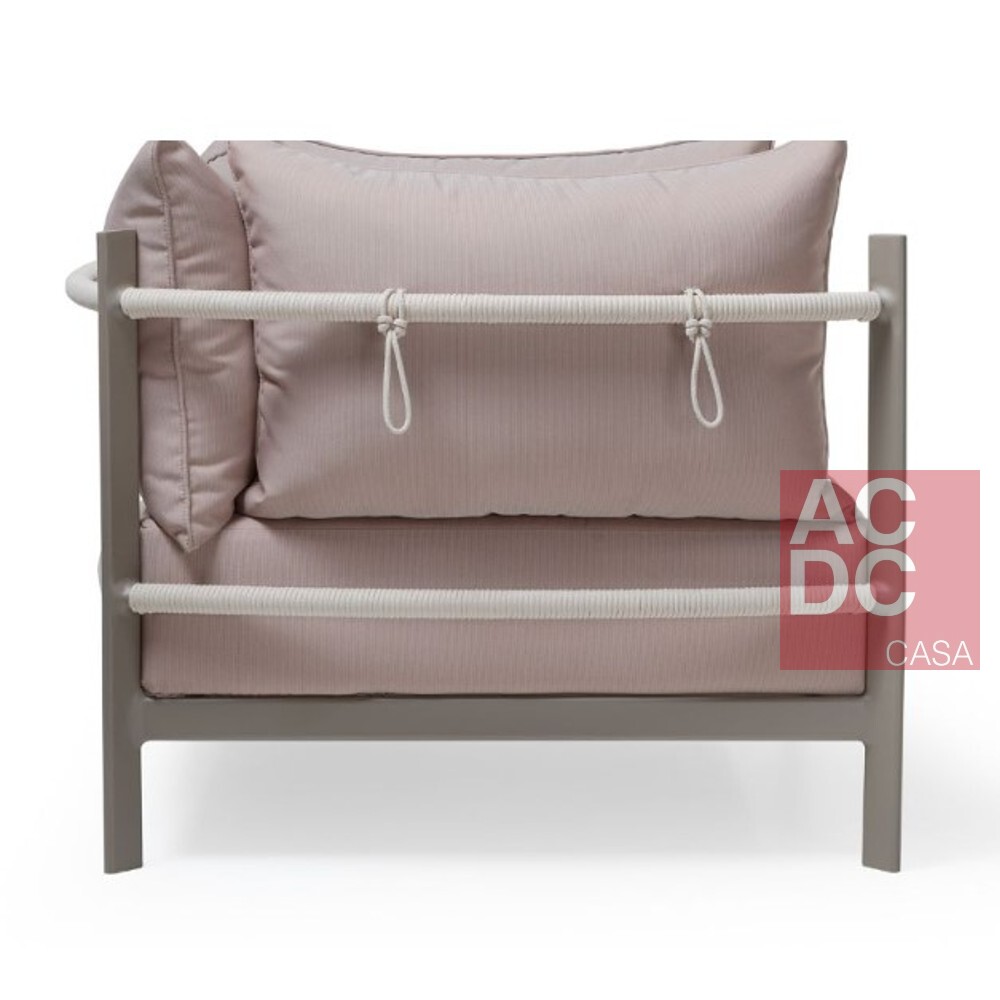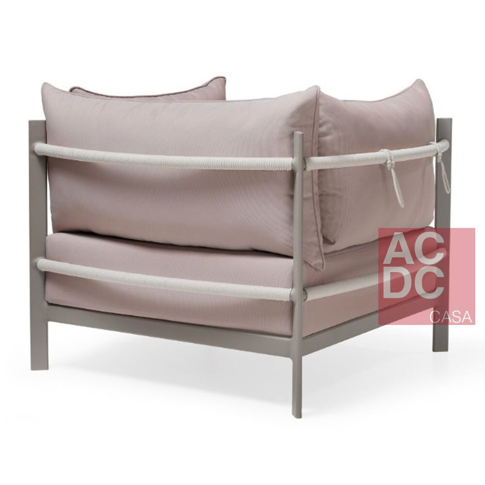 Material: Estrutura em alumínio. Assento e encosto soltos, estofados e revestidos com tecido especial para área externa.