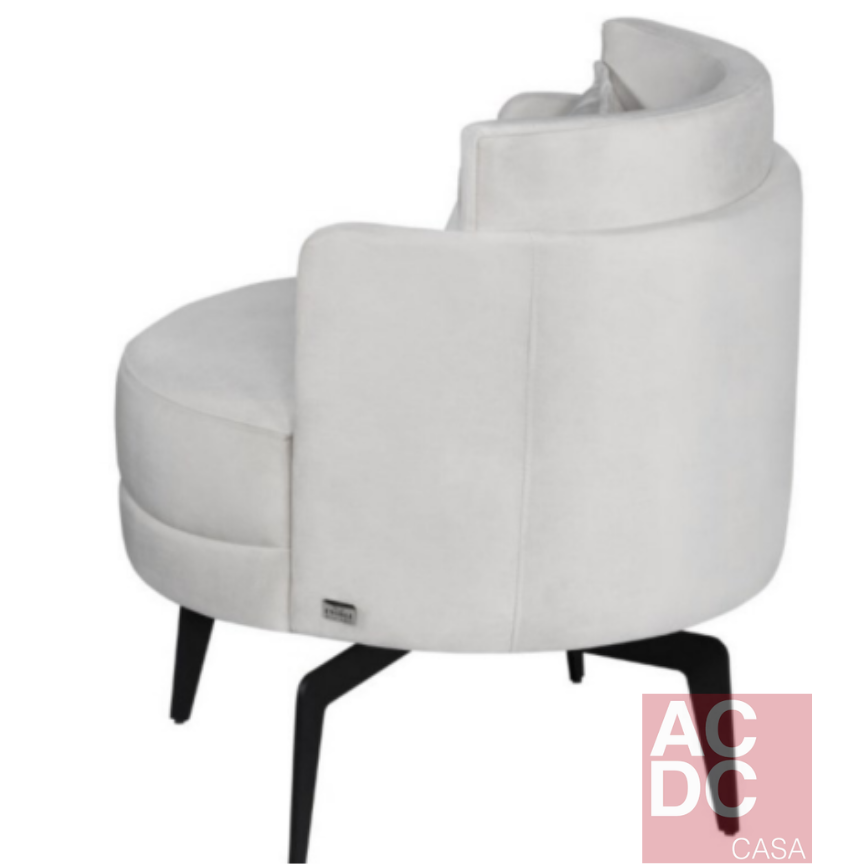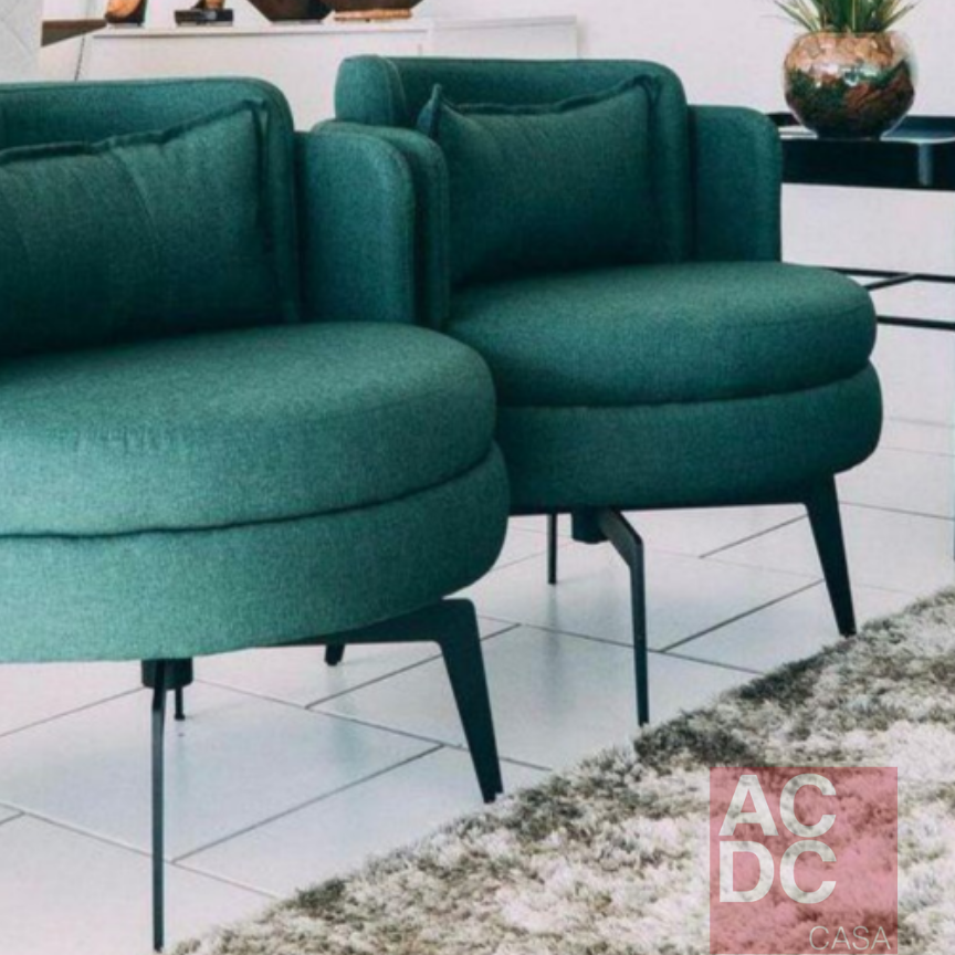 Material: Estrutura em madeira eucalipto. Espuma de alta resiliência. Almofada de assento fixa e encosto solto. Base em aço carbono giratória . Estofamento macio.