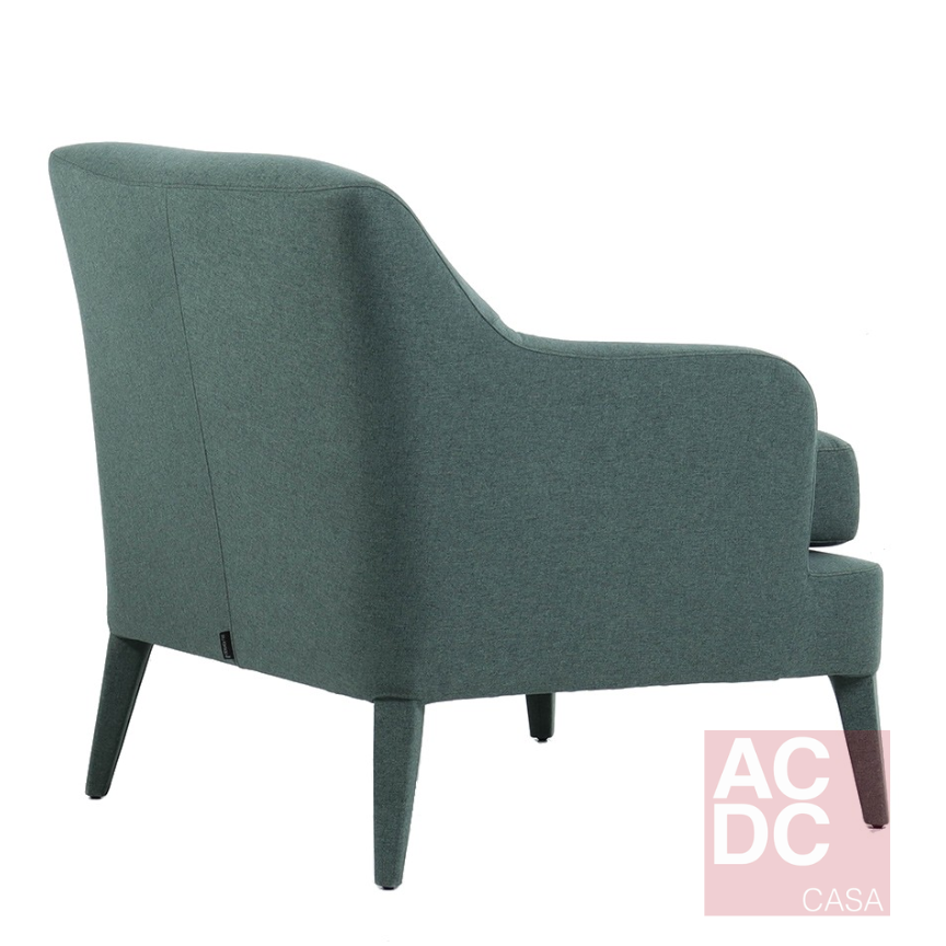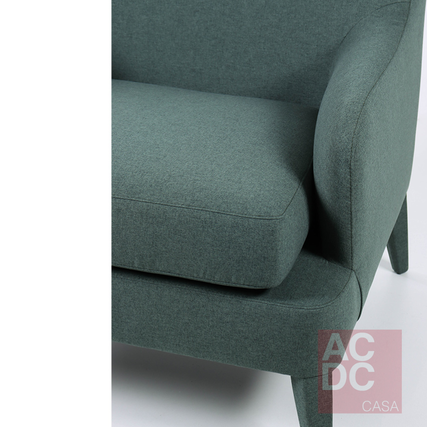 Material: Madeira Eucalipto, mola zig-zag, percinta elástica, espuma D28, envolvida com manta siliconada. Almofada de assento solta. Pé madeira Forrado em tecido.