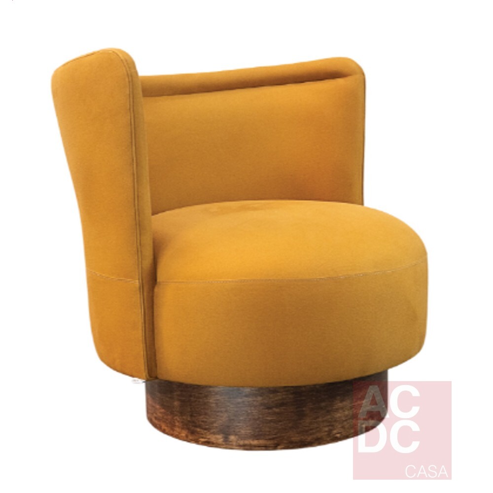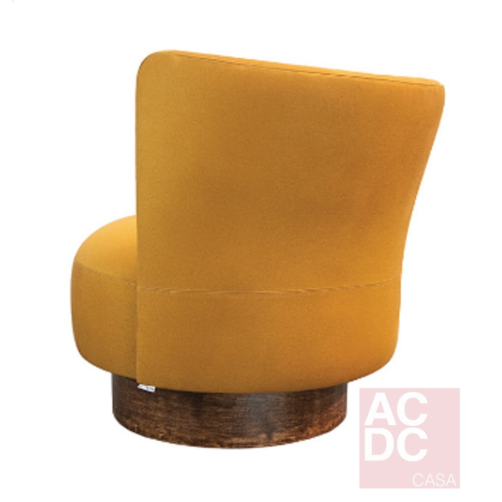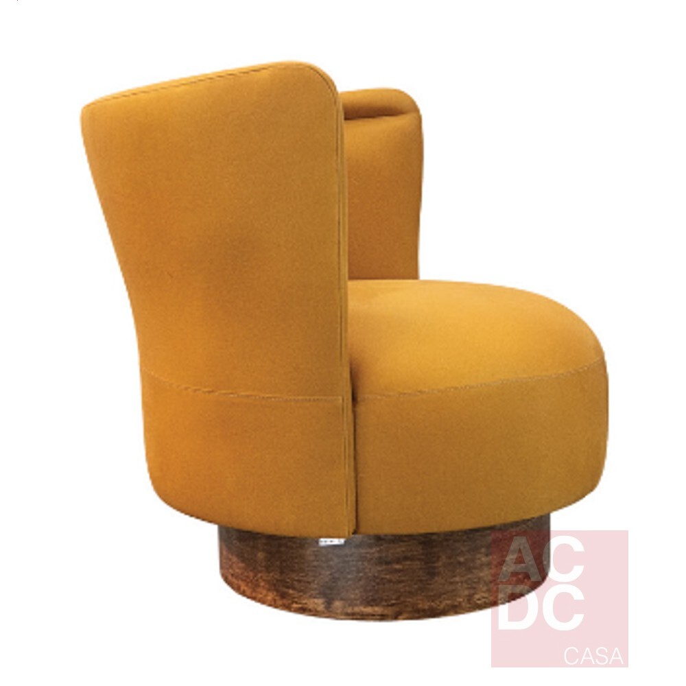 Material: Estrutura em madeira sistema giratório, encosto e assento estofados em tecid0, base em madeira