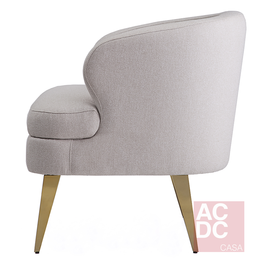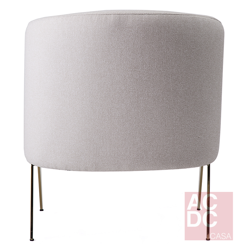 Material: Assento com almofada solta e encosto fixo, pés em metal dourado