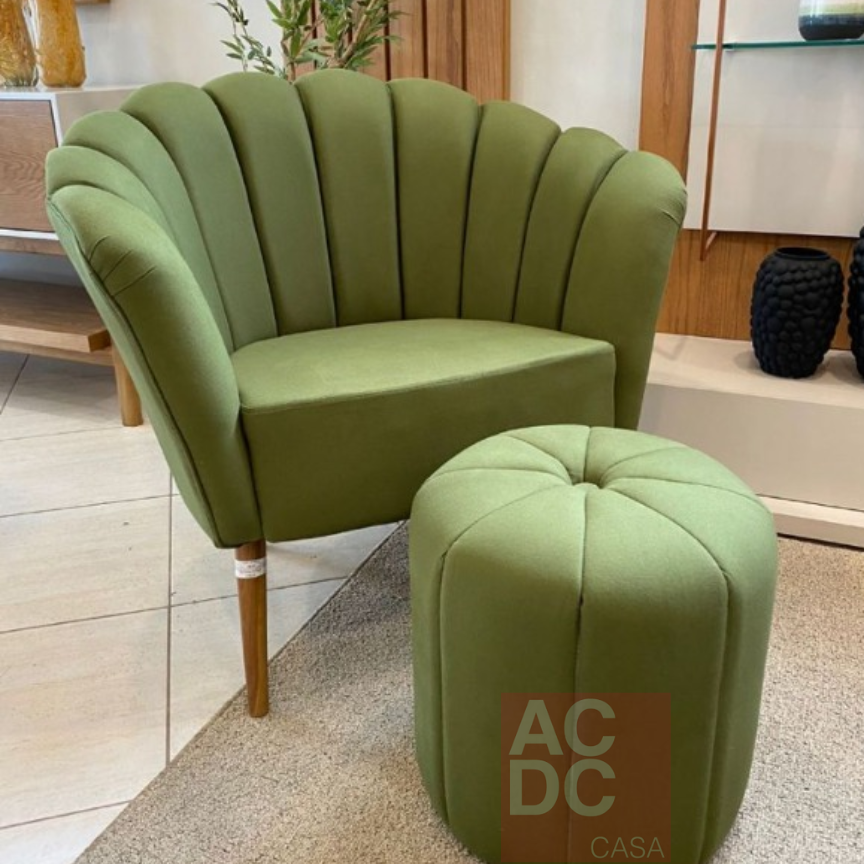 Poltrona com concha estofada, opção de pés palito em madeira ou aço dourado
