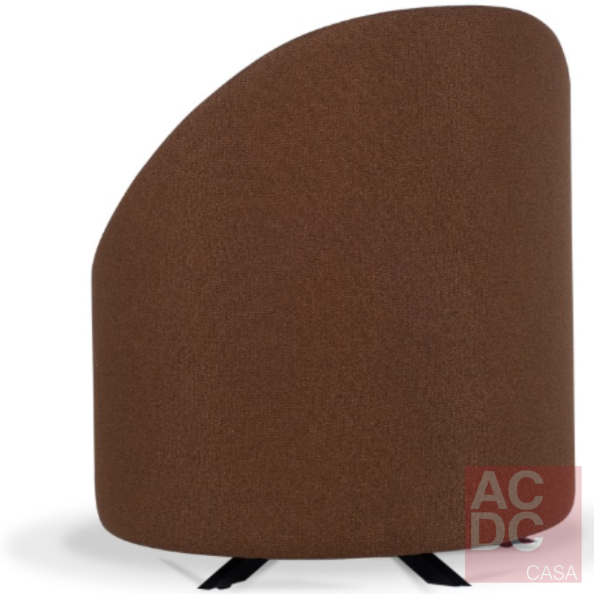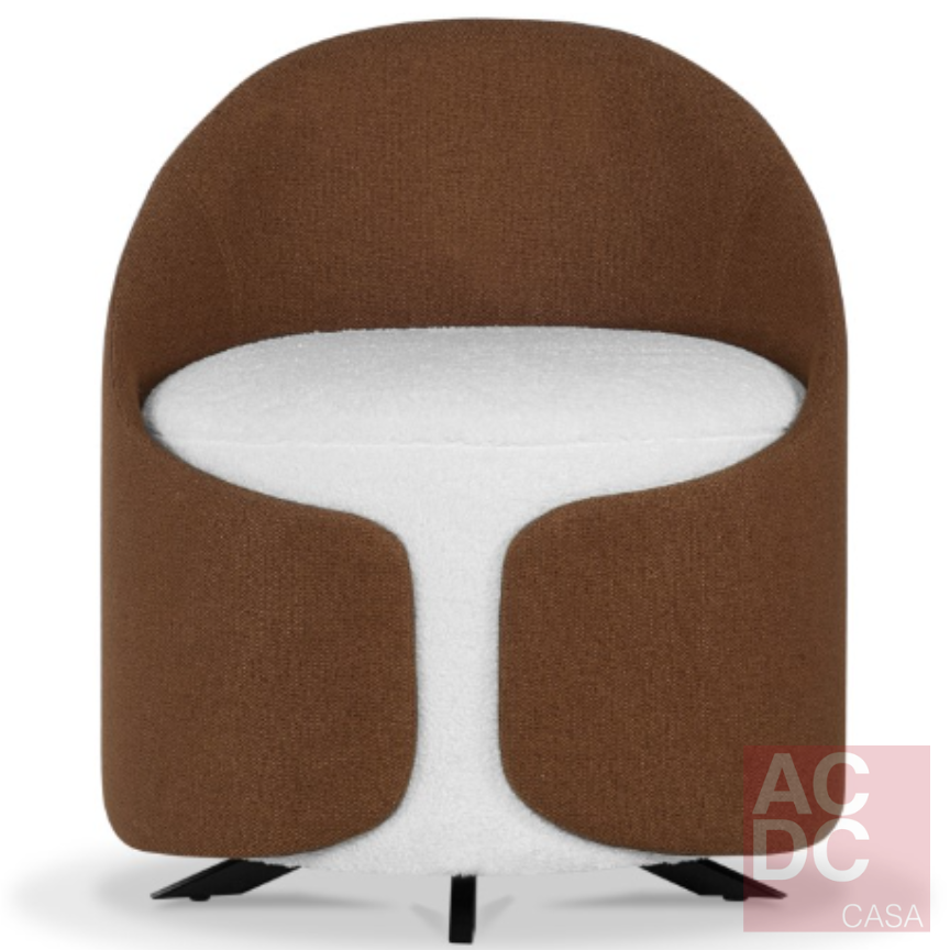 Material: Estrutura em fibra de vidro e madeira. Assento com almofada fixa. Base giratória e Detalhes em aço carbono pintado. Persintas elásticas de alta resistência