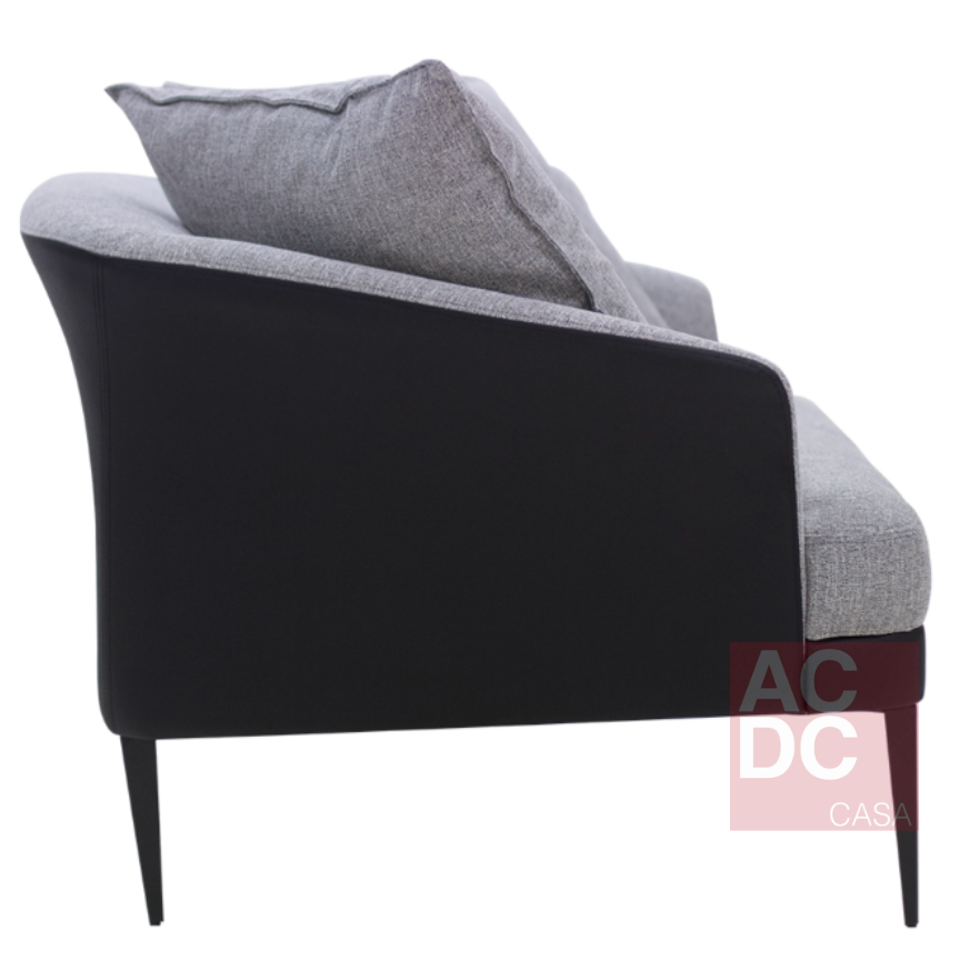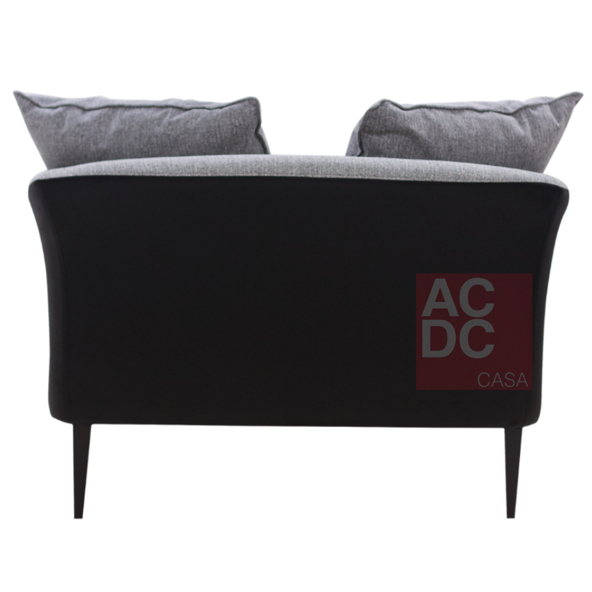 Material: Em fibra de vidro, assento fixo com persintas italianas de alta resistência, almofadas de encosto soltas, pés em aço carbono pintado