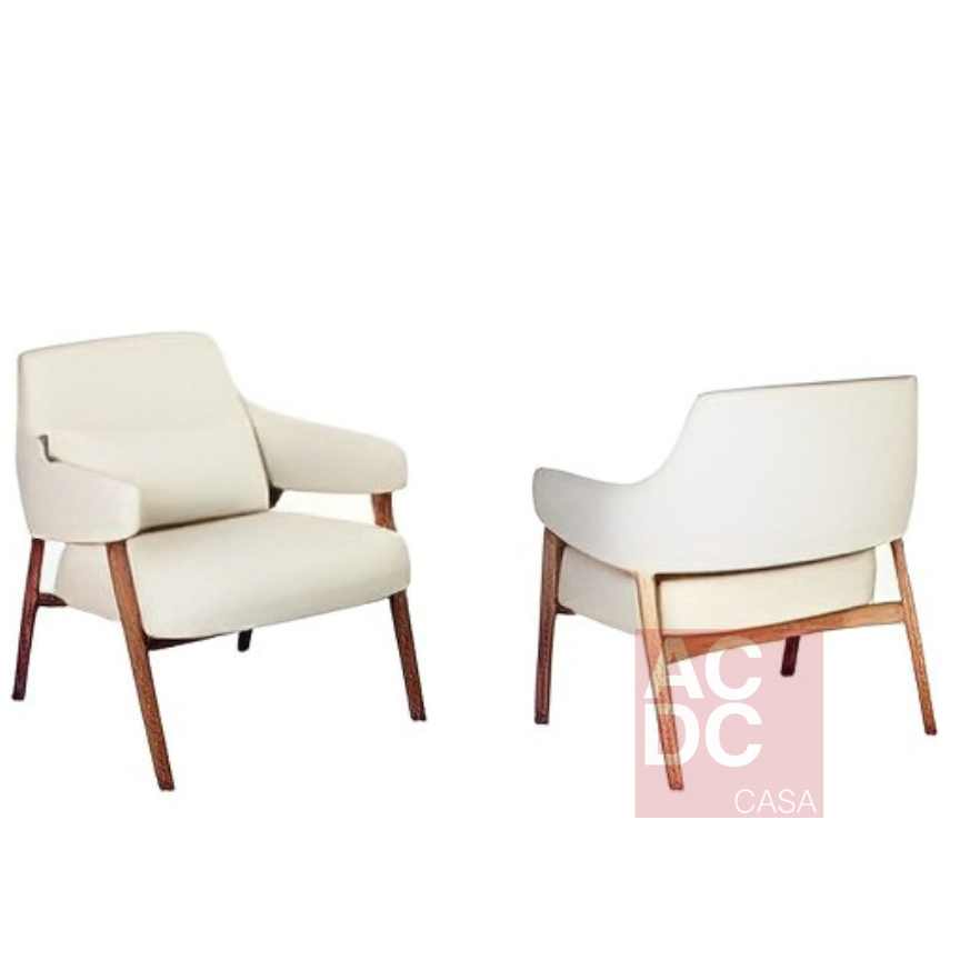 Material: Estrutura em madeira maciça, com assento e encosto estofados em tecido