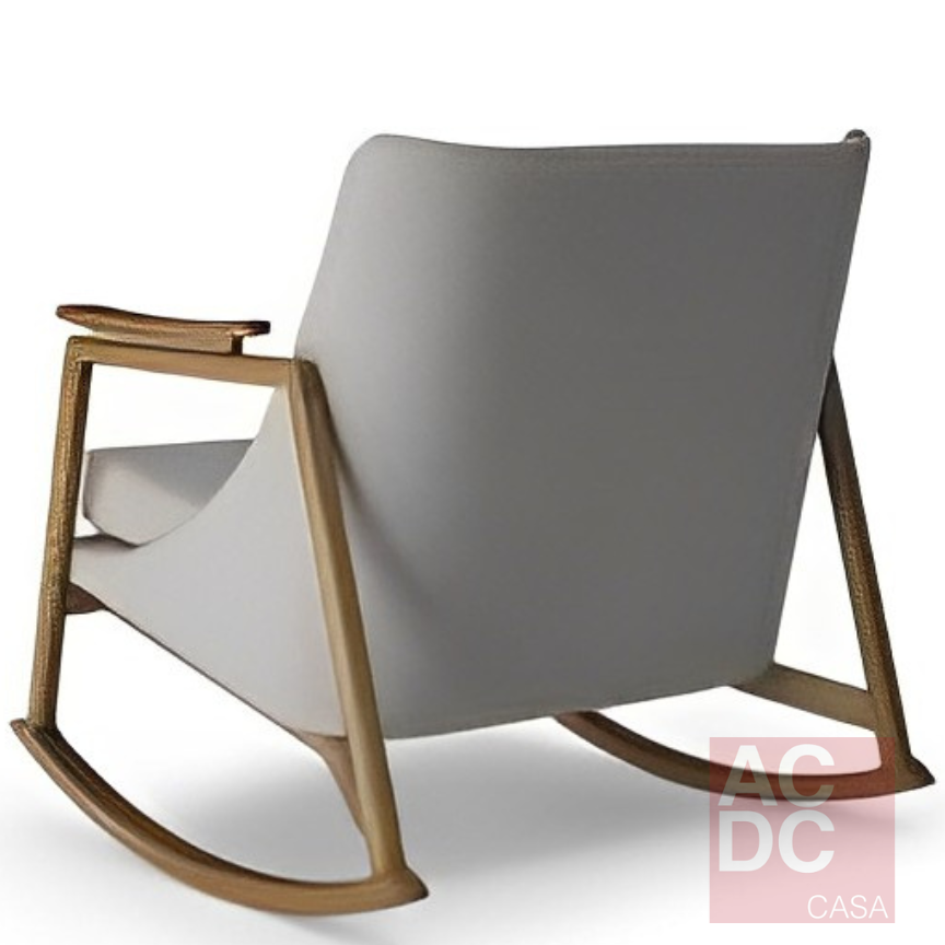 Juntamente com o assento, são posicionados sobre travessas ligadas aos quadros laterais, numa solução estrutural sem similar. O resultado é um design leve como nunca visto numa poltrona de balanço.