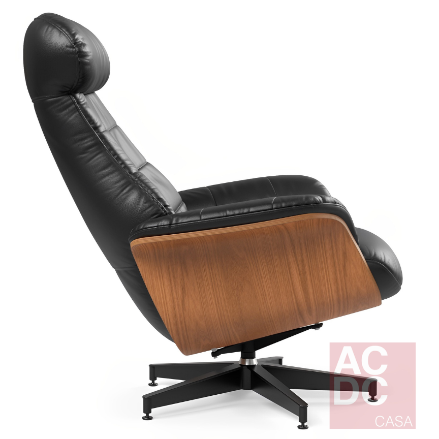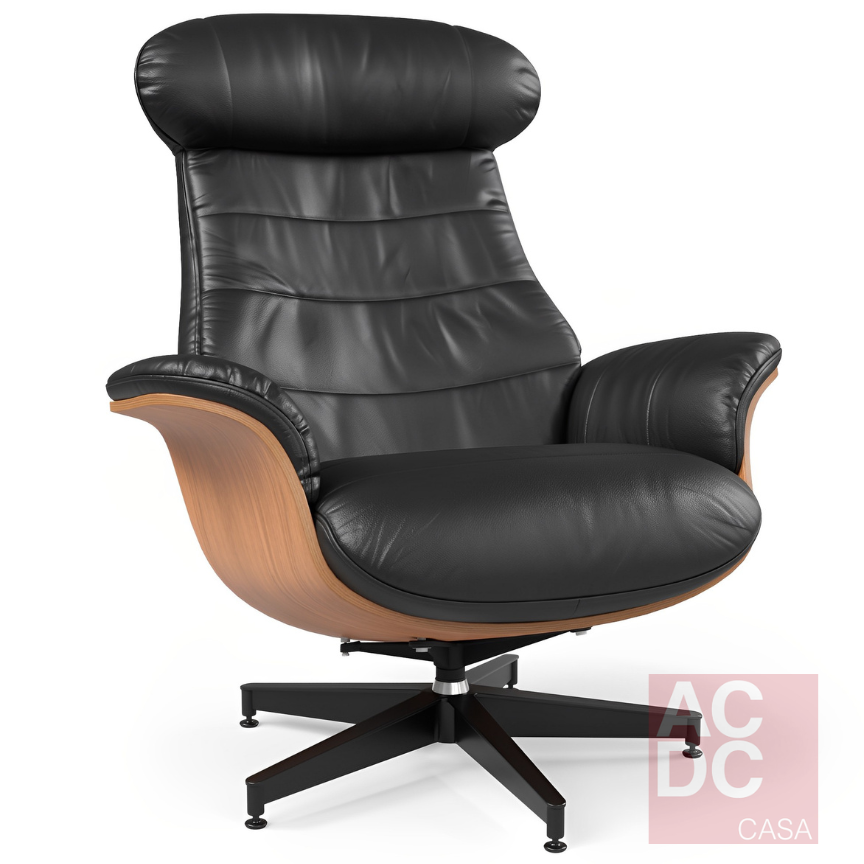 Material: Estrutura em madeira tonalizada estofada, base giratória – Detalhes nos braços e encosto