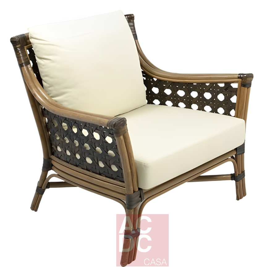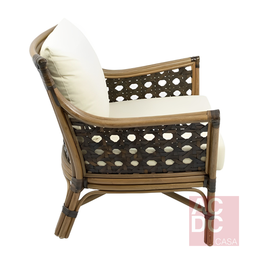 Material: Estrutura em rottin e couro natural com assento e encosto estofados.