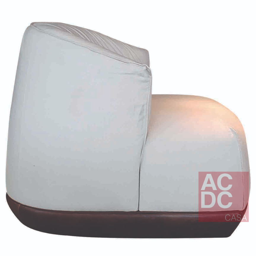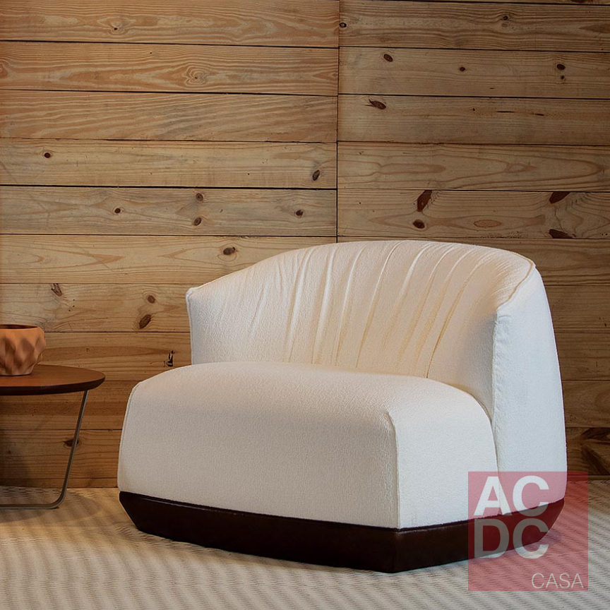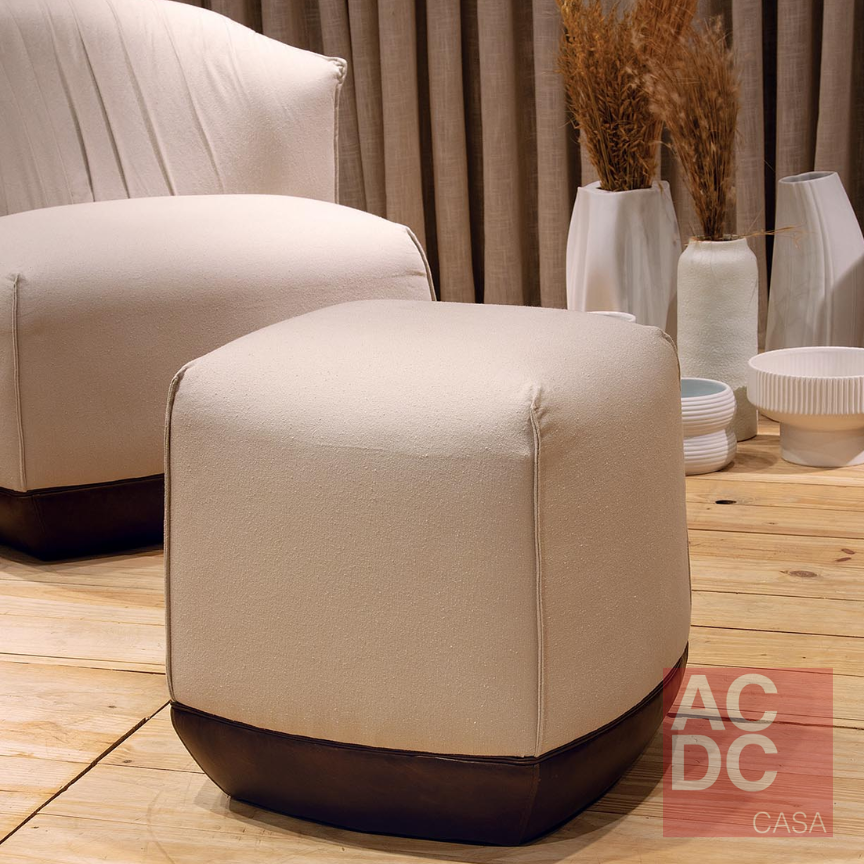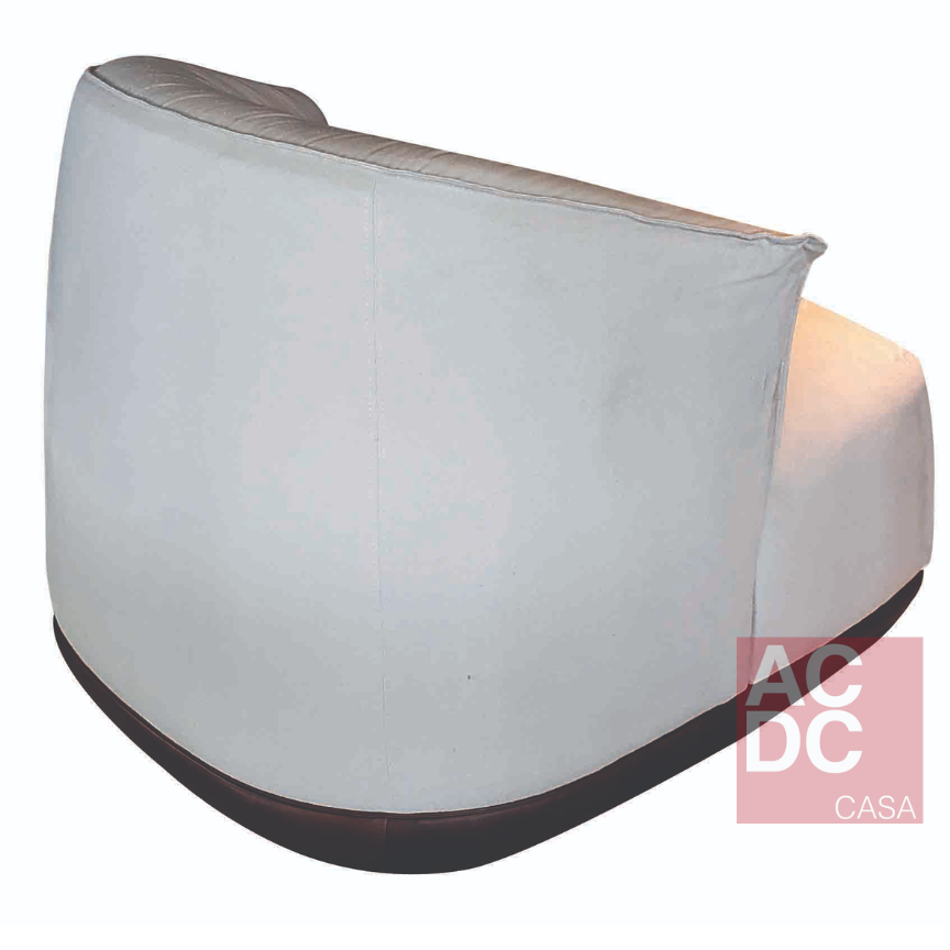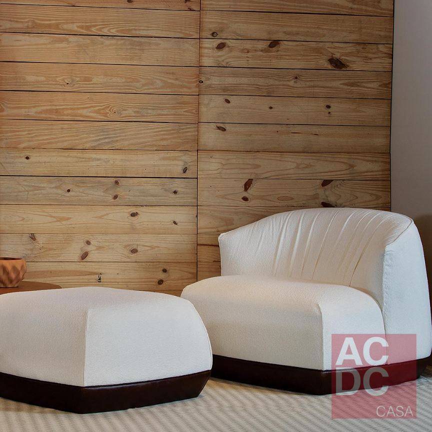Material: Estrutura em madeira, estofada , detalhe da base em couro sintético
