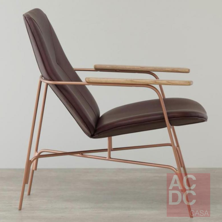 Material: Estrutura em aço carbono e laca fosca bronze com braços em jequitiba