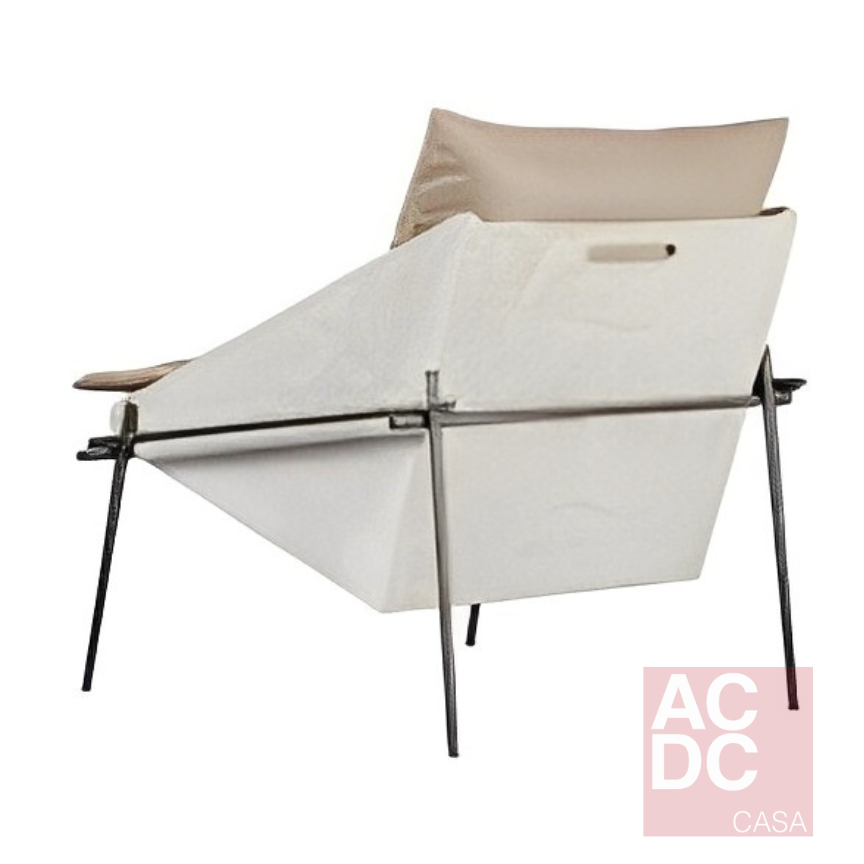 MADEIRA, AÇO DE CONSTRUÇÃO, CIMENTO E ESTOFADO SÃO OS MATERIAIS DESTA PEÇA PECULIAR.