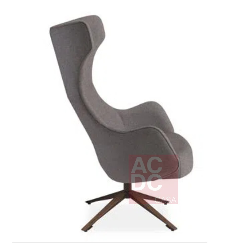 Material: Poltrona estofada, giratória com base laminada