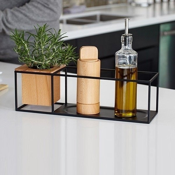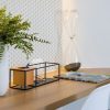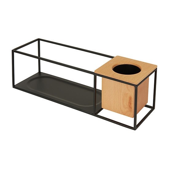 Vem com uma pequena caixinha de madeira removível, que serve para colocar canetas, acessórios e plantas (vem com encaixe plástico que previne o vazamento de água).