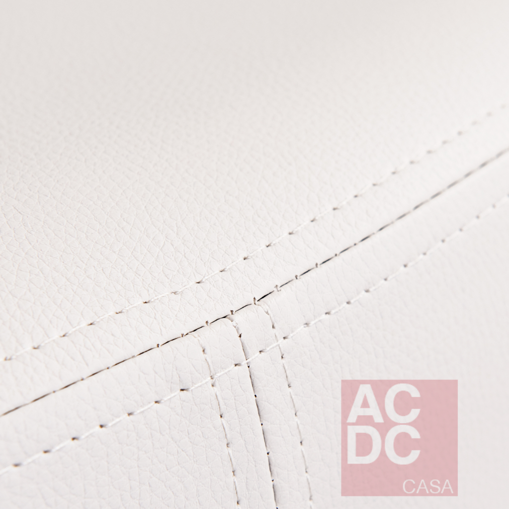 Material: Estofamento em espuma D28 soft. Base em aro de aço carbono com pintura automotiva na cor prata. Revestimento com tecido em Couro Sintético