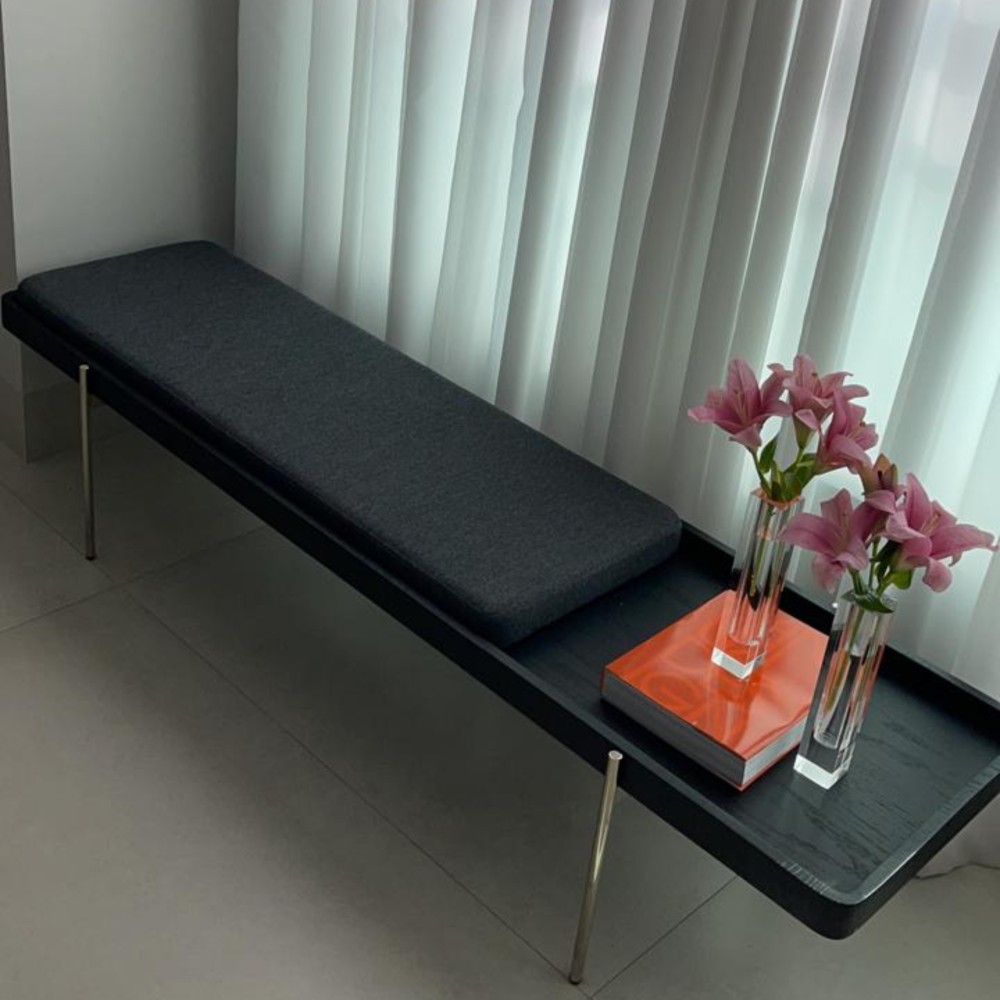 Material: Estrutura em madeira laminada, base em aço carbono pintado e estofado