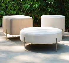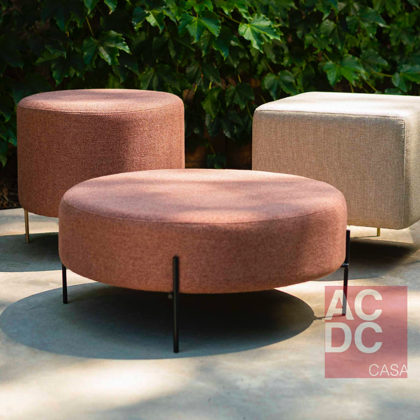 Material: Puff estofado, com base em aço carbono pintado, Espuma D26.