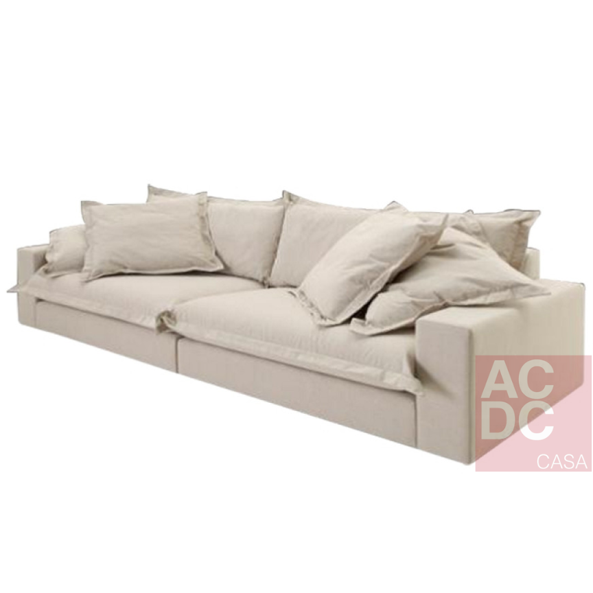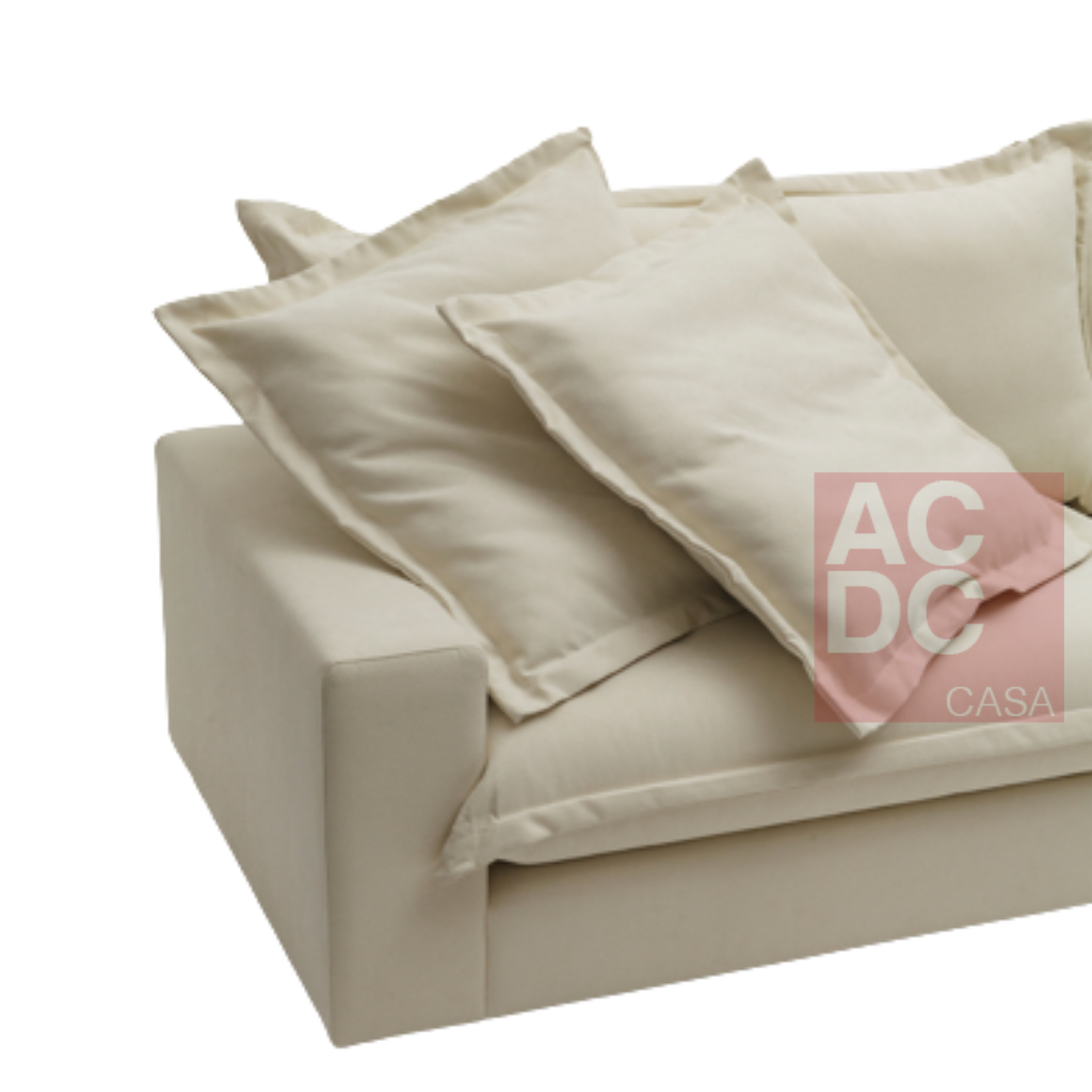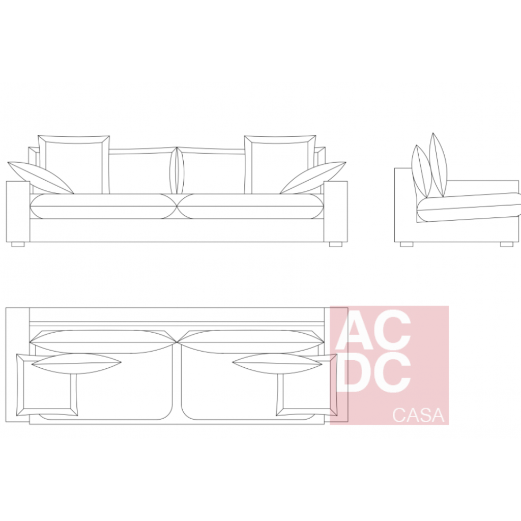 Capa Fixa Sofá  com estrutura em madeira, assento com molas bonnell, persintas italianas e espuma D-33 SOFT, almofadas soltas no assento e no encosto. Seus assentos são confeccionados em espumas especiais do tipo RR Soft (Rápido retorno ou efeito mola), todas as almofadas são fechadas com ziper e capas removíveis e laváveis, para essa função recomenda-se que sejam confeccionadas em tecidos pré-encolhidos. Almofadas de encosto em fibra siliconada. Almofadas decorativas medidas de 68x68x22 cm com aba 4 cm