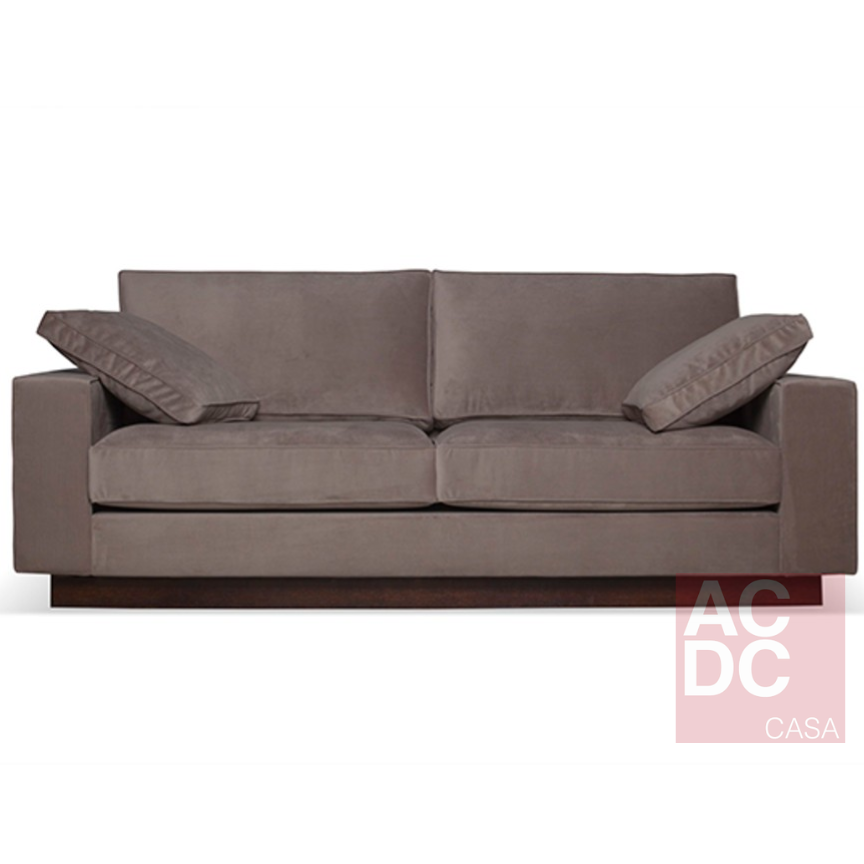 Material: Sofá com 2 almofadas decorativas, encosto e assento soltas. Base em madeira recuada