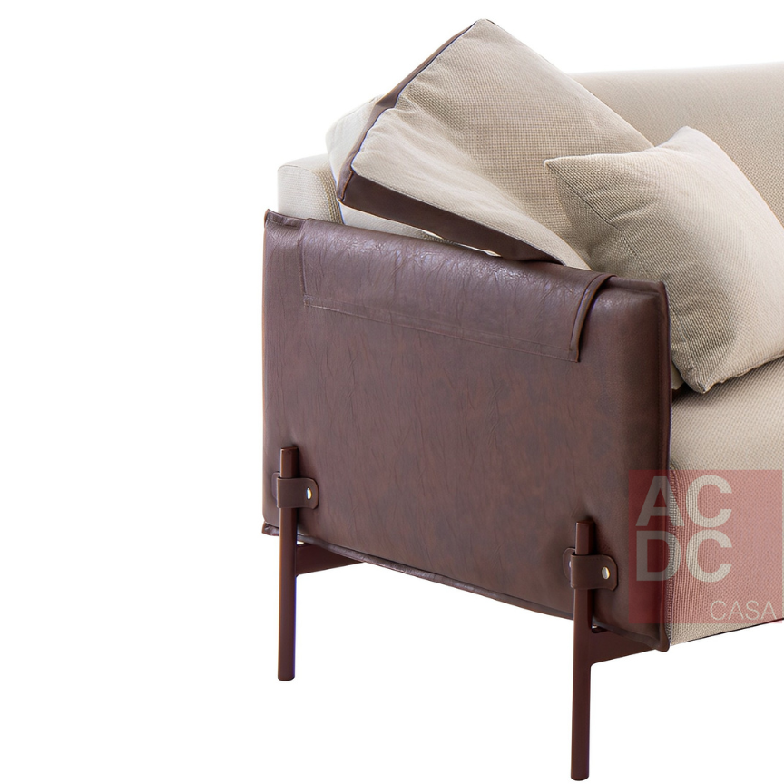 Cor: Tecido linho cru e tecido sintético marrom.
