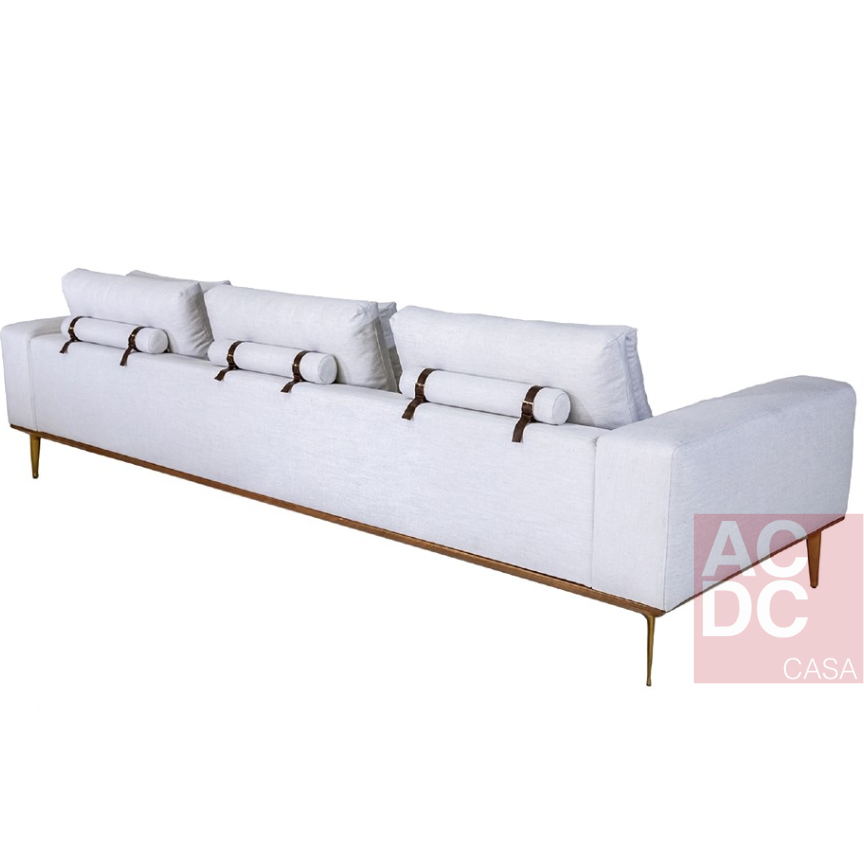 Material: Estrutura em madeira de eucalipto tratada. Assento com percintas elásticas, espuma D-28 Soft com camada D-18 Soft e manta acrílica. Encosto com almofada solta em manta siliconada. Pés em alumínio.
