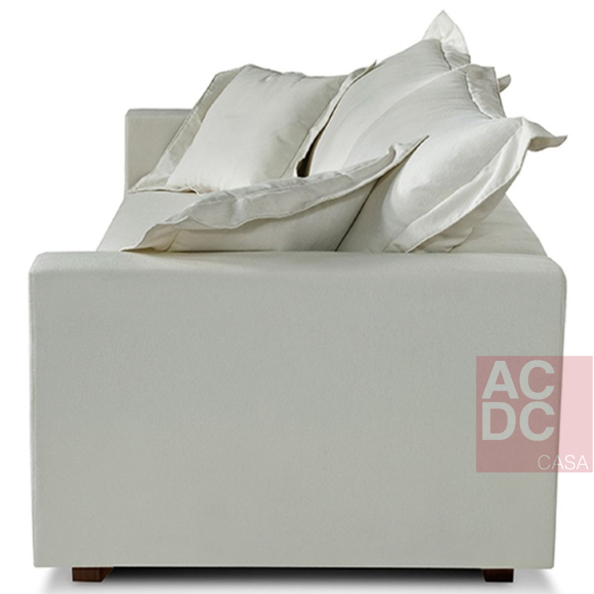 Com conceito despojado, o sofá Baobá revela seu conforto. Estrutura em madeira eucalipto. Espuma de alta resiliência e tecnologia desenvolvida especialmente para conforto e durabilidade do assento. Almofada de assento fixa envolvida com manta acoplada, sustentada por precintas elásticas trançadas e entrelaças e molas bonnel. Almofada de encosto e decorativas soltas, enchimento em fibra siliconada, distribuída no sistema colmeia que garantem conforto e uniformidade, envolvidas com manta plumante. Pés recuados em MDF revestido. Braço 20cm – Almofadas decorativas inclusas no preço.