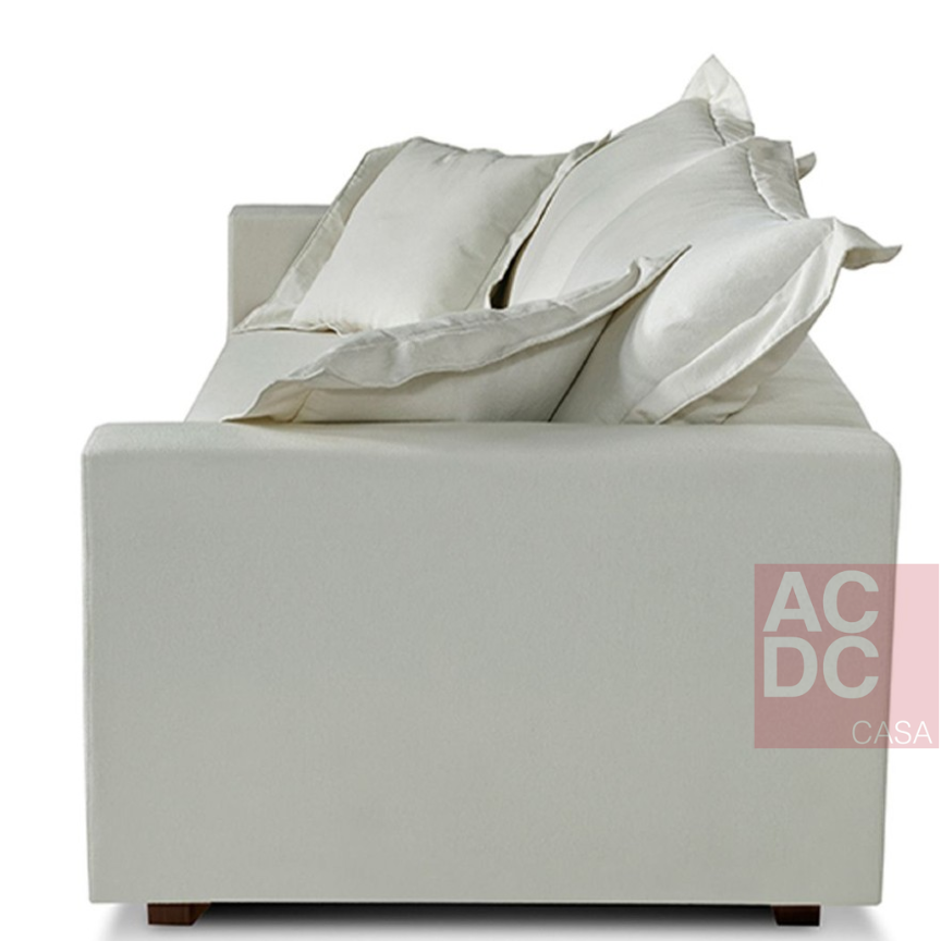 Com conceito despojado, o sofá Ba0ba revela seu conforto. Estrutura em madeira eucalipto. Espuma de alta resiliência e tecnologia desenvolvida especialmente para conforto e durabilidade do assento. Almofada de assento fixa envolvida com manta acoplada, sustentada por persintas elásticas trançadas e entrelaças e molas bonnel. Almofada de encosto e decorativas soltas, enchimento em fibra siliconada, distribuída no sistema colmeia que garantem conforto e uniformidade, envolvidas com manta plumante. Pés recuados em MDF revestido. Braço 20cm – Almofadas decorativas inclusas