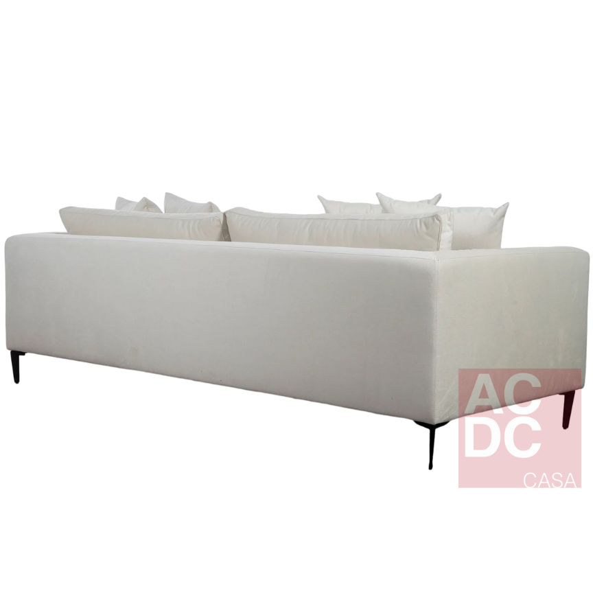 Sofá fixo, encosto e assento revestido em tecido tramado pés em alumínio pintado fosco