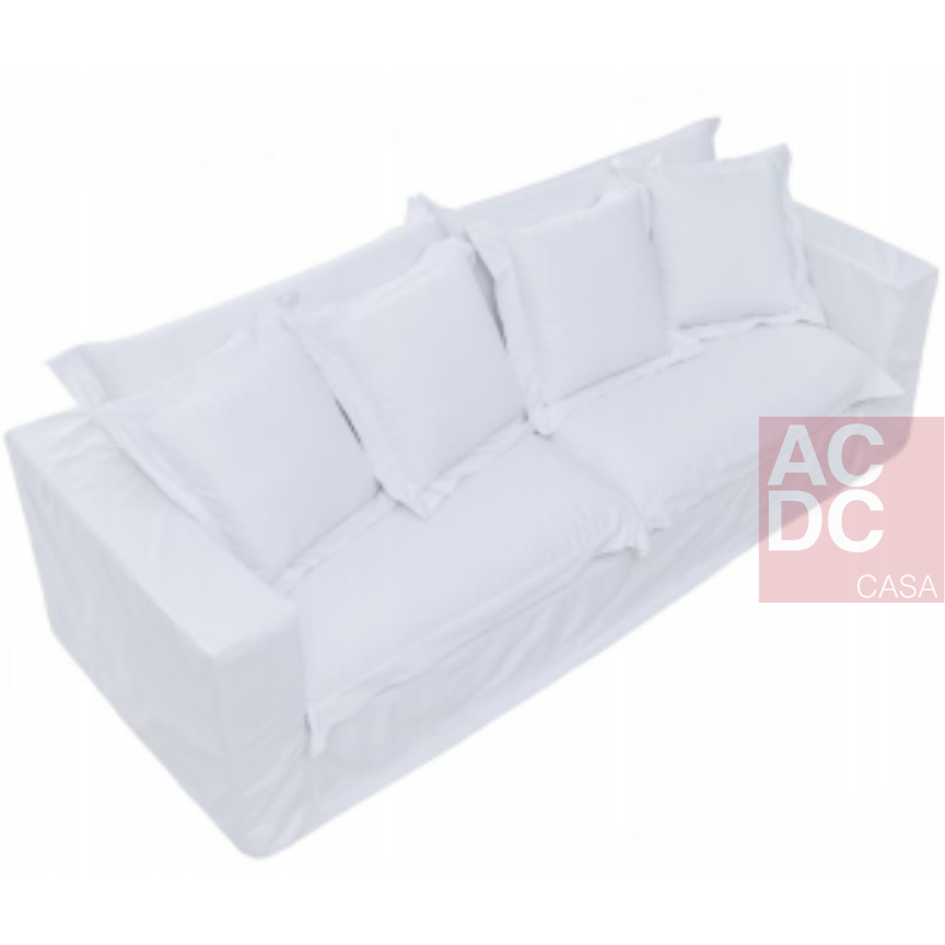 Material:  Estrutura em madeira eucalipto, espuma de alta resiliência.  Assento como encosto são soltos e envolvidos com manta acoplada, sustentados por mola zig-zag.