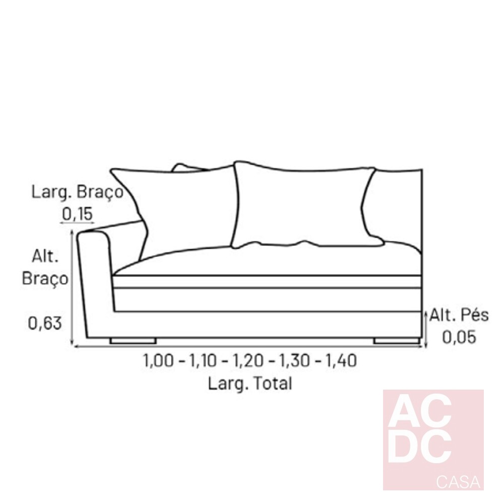 Medida Unitária: Altura: 93 | Comprimento: 240 | Profundidade: 104 cm | Bipartido | Braço: 15 cm