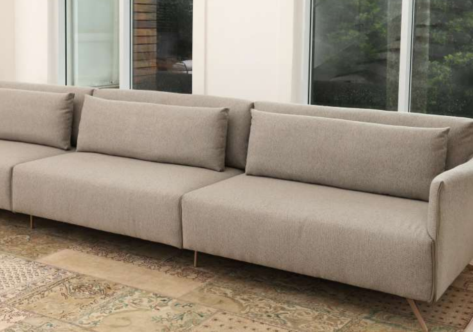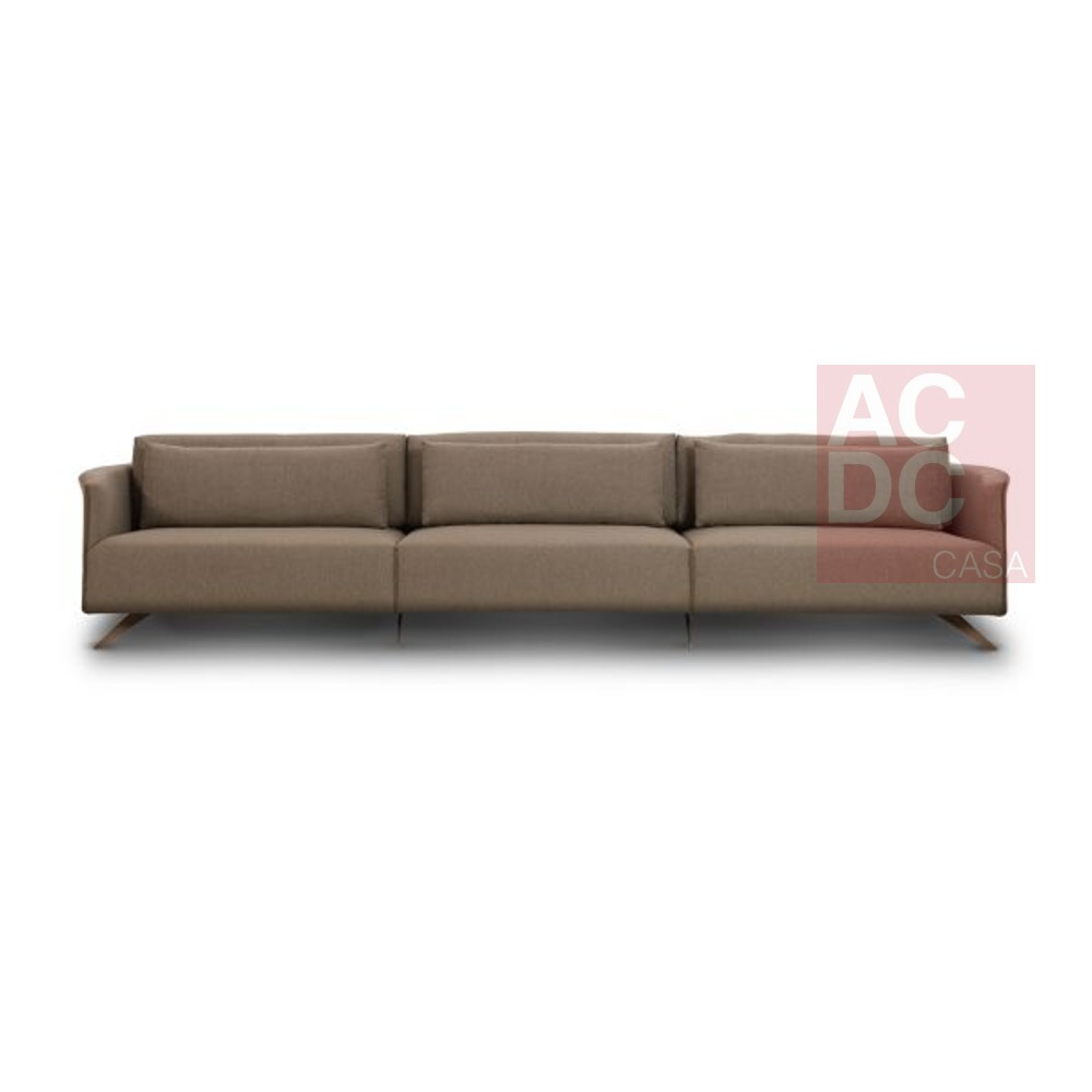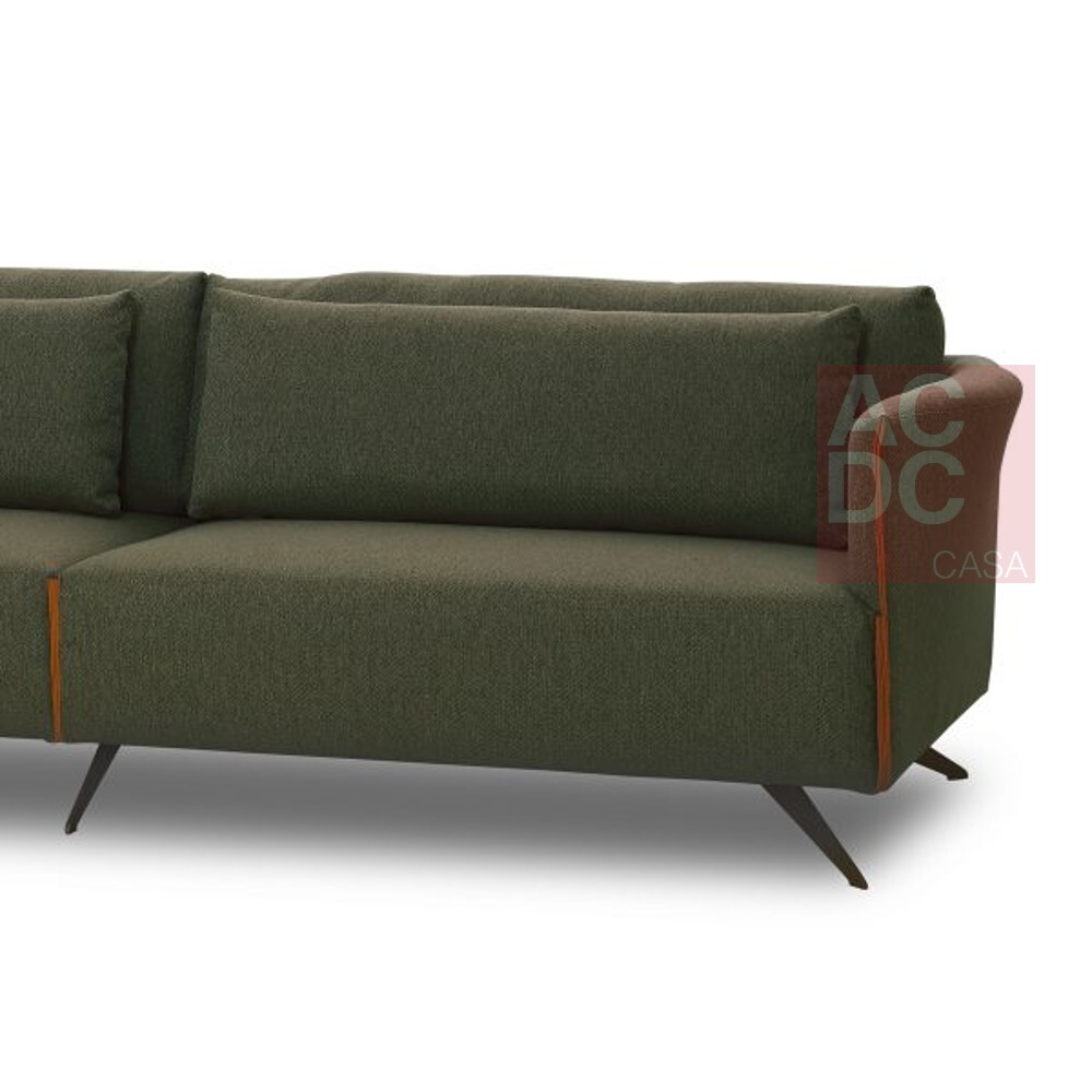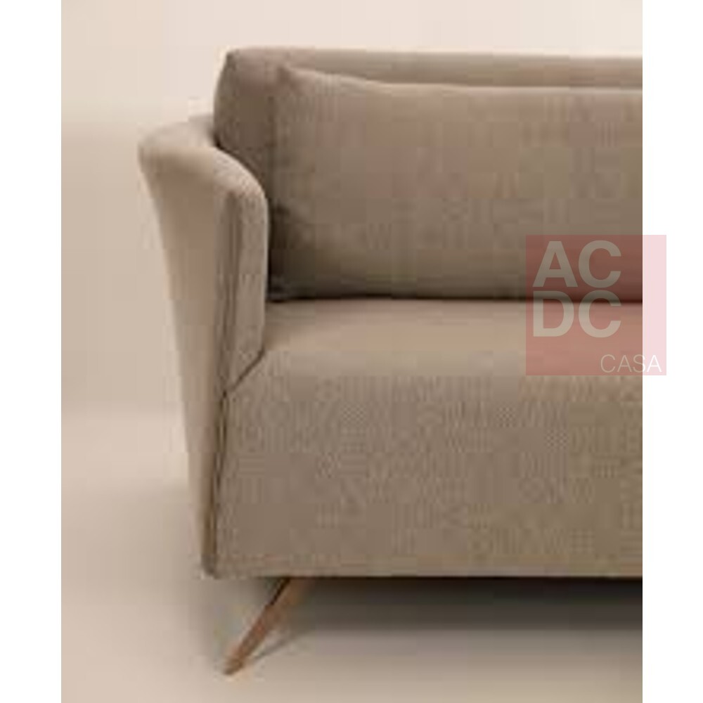 Material: Estrutura em madeira, com molas zig zag, encosto em percinta, com espuma D30 e pés em aço carbono. Não incluso no preço as almofadas decorativas